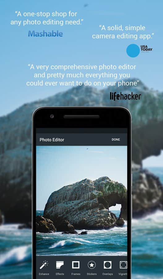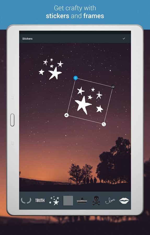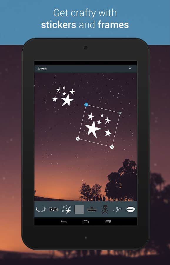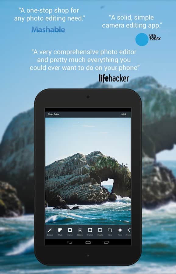 Любишь фотографировать и применять к получившимся фото спецэффекты? С приложением Photo Editor by Aviary это станет лёгким и приятным занятием, ведь фоторедактор имеет не только понятный и удобный интерфейс, но и множество инструментов, таких, как баланс цвета, коррекция красных глаз, отбеливание зубов, добавление текста и рисование, бесплатные фотоэффекты, возможность менять контрастность, регулировать яркость, вращать фото, добавлять смешные стикеры и многое другое. С этим помощником твои фотографии будут самыми незабываемыми и оригинальными.