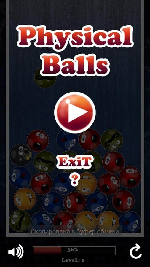 Физические Шарики - Аркадная андроид головоломка в жанре «три в ряд», только на этот раз с физическими элементами. Сверху падают шарики, вам нужно собирать цепочки из шаров одинаковых по цвету. Так же на поле выпадают бонусные шары, которые при прикосновении красятся в цвет соседних шаров, а так же шары-бомбы, которые взрываются. Цель игры – заполнить шкалу времени. Чем быстрее вы будете собирать комбинации, тем быстрее пройдете уровень.