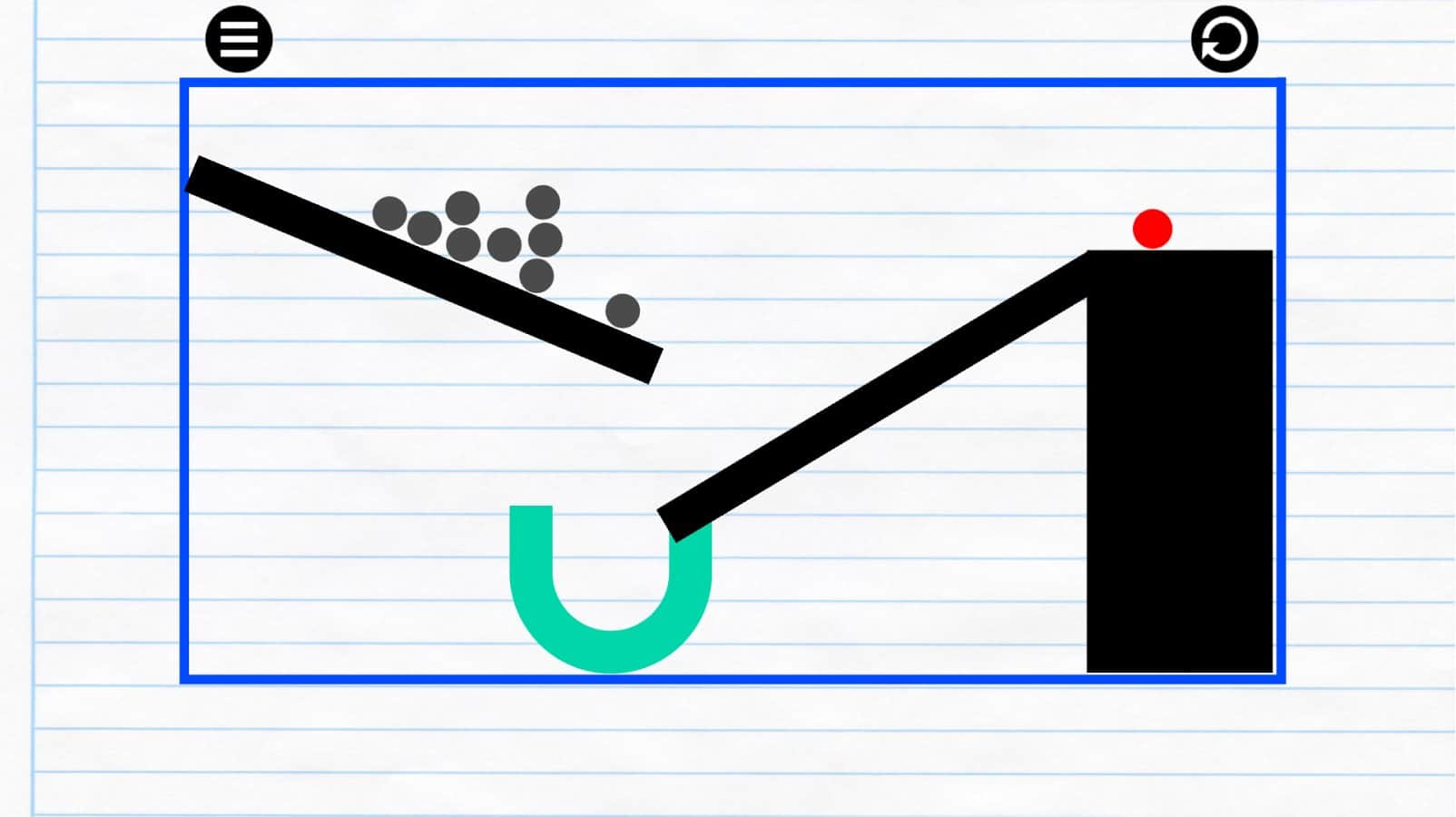 Physics Drop – увлекательная головоломка на андроид, где вы на деле будете проверять свою сообразительность и фантазию. В этой игре вашей задачей будет закатить шарик в специально отведенное для него место в виде буквы U. Рисуйте линии, различные фигуры и другие приспособления для того чтобы шарик подчиняясь законам гравитации катился по ним и достиг конечной цели. Избегайте многочисленных ловушек и препятствий на пути и старайтесь обойти их. Пройдите более 18 уровней этой игры, сложность которых будет постепенно увеличиваться и нажимайте на кнопку перезагрузки, если угодите в ловушку.