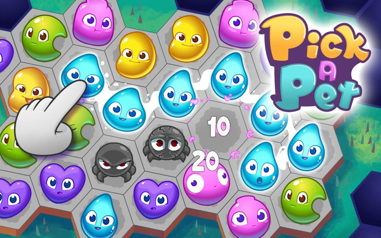 Pick a Pet - Веселая головоломка на андроид с забавными героями по типу «Три в ряд». Кроме стандартной типа игры, у вас есть возможность выбрать своего питомца и отправится с ним в удивительное путешествие на защиту существам, которые похожи на капитошки. Также по ходу игры количество открытых зверюшек будет увеличивается.