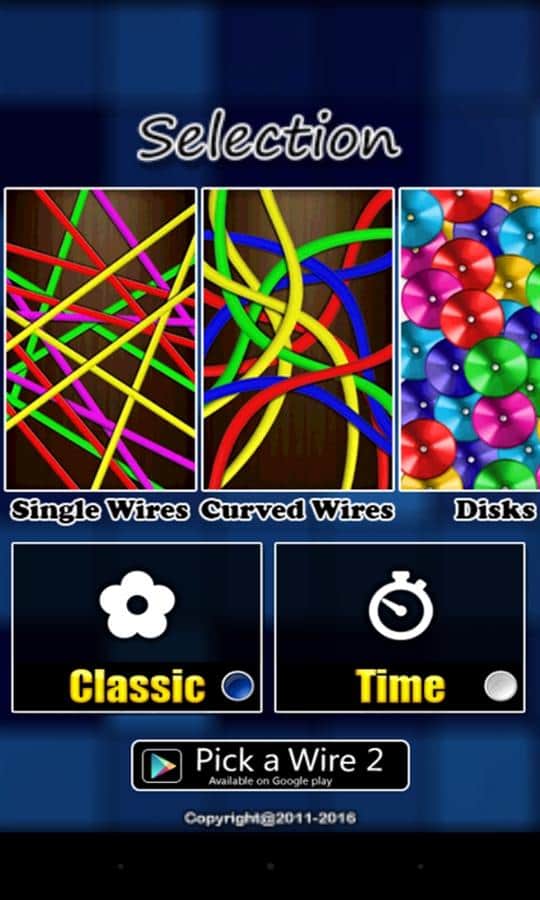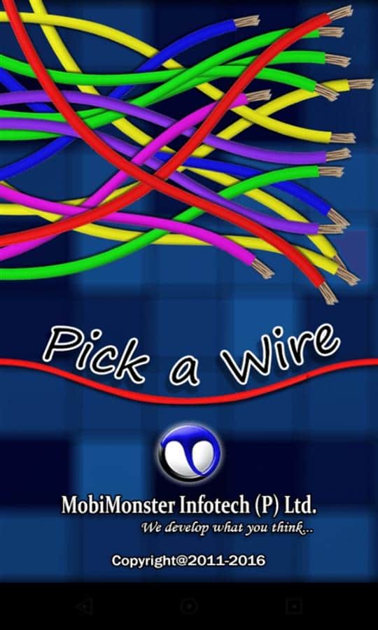 Pick a Wire – интересная игра в которой вам предстоит разбирать разноцветные провода. Найдите самый верхний провод в большом разнообразии разноцветных проводов как можно быстрее и заработайте тем самым максимальное количество очков. Тщательно глядите на экран и ищите начало всех проводов. Игра состоит из двух режимов игры: первый классический в нем вам будет даваться неограниченное количество времени на поиск начала провода, а второй режим на время которое будет торопить вас и не давать сосредоточиться на проводе. Игра порадует вас хорошей графикой и возможностью играть в любое свободное время.
