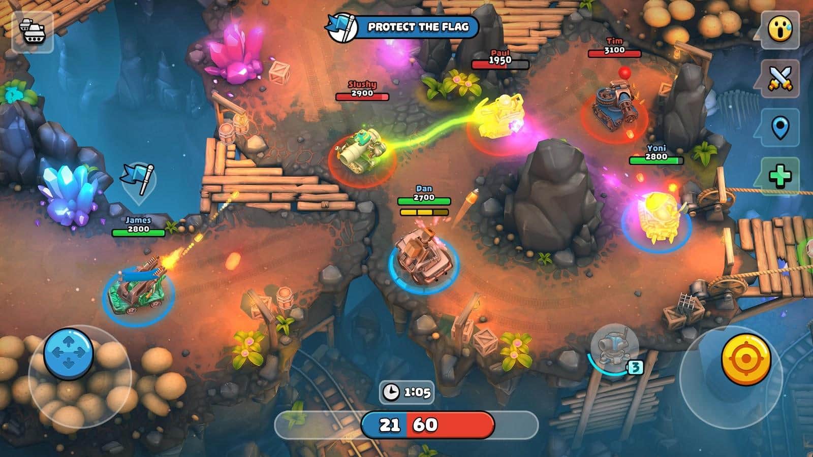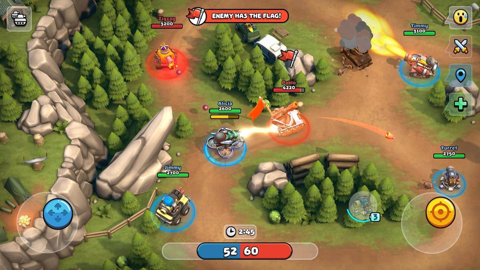 Пико-танки: многопользовательский хаос – динамичный экшен на андроид, где вы примите участие в командных битвах. Возьмите под свой контроль собственный уникальный танк, который вы сможете собрать самостоятельно и примите участие в захватывающих битвах, проходящих в режиме 3 на 3. Приглашайте в игру своих друзей и вместе с ними соберите свою непобедимую команду, которая сможет победить противников. Перемещайтесь по различным картам игры и соревнуйтесь с лучшими игроками. Выслеживайте своих противников на арене и уничтожайте их быстрее чем они смогут добраться до вас. Обновляйте и улучшайте свой танк применяя к нему новые детали и оружие которые смогут разительно повлиять на игровой процесс.
