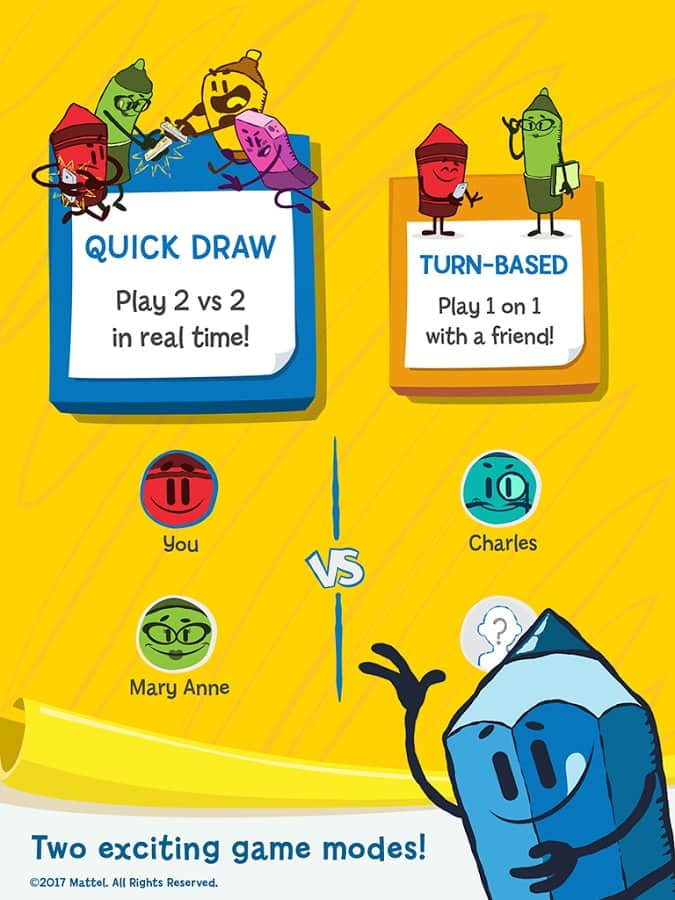 Pictionary - Это приложение одновременно и простая рисовалка которая научит вас создавать свои шедевры и в тоже время это увлекательная игра, где можно соревноваться на время. Суть заключается в том что бы нарисовать определенный рисунок как можно быстрее и красивее, а потом решить чей же шедевр вышел лучше. Эта игра отлично подойдет и взрослым и детям которые любят рисовать везде где только можно. Отучите вашего ребенка рисовать на обоях, и научите его настоящему искусству рисования на планшете.