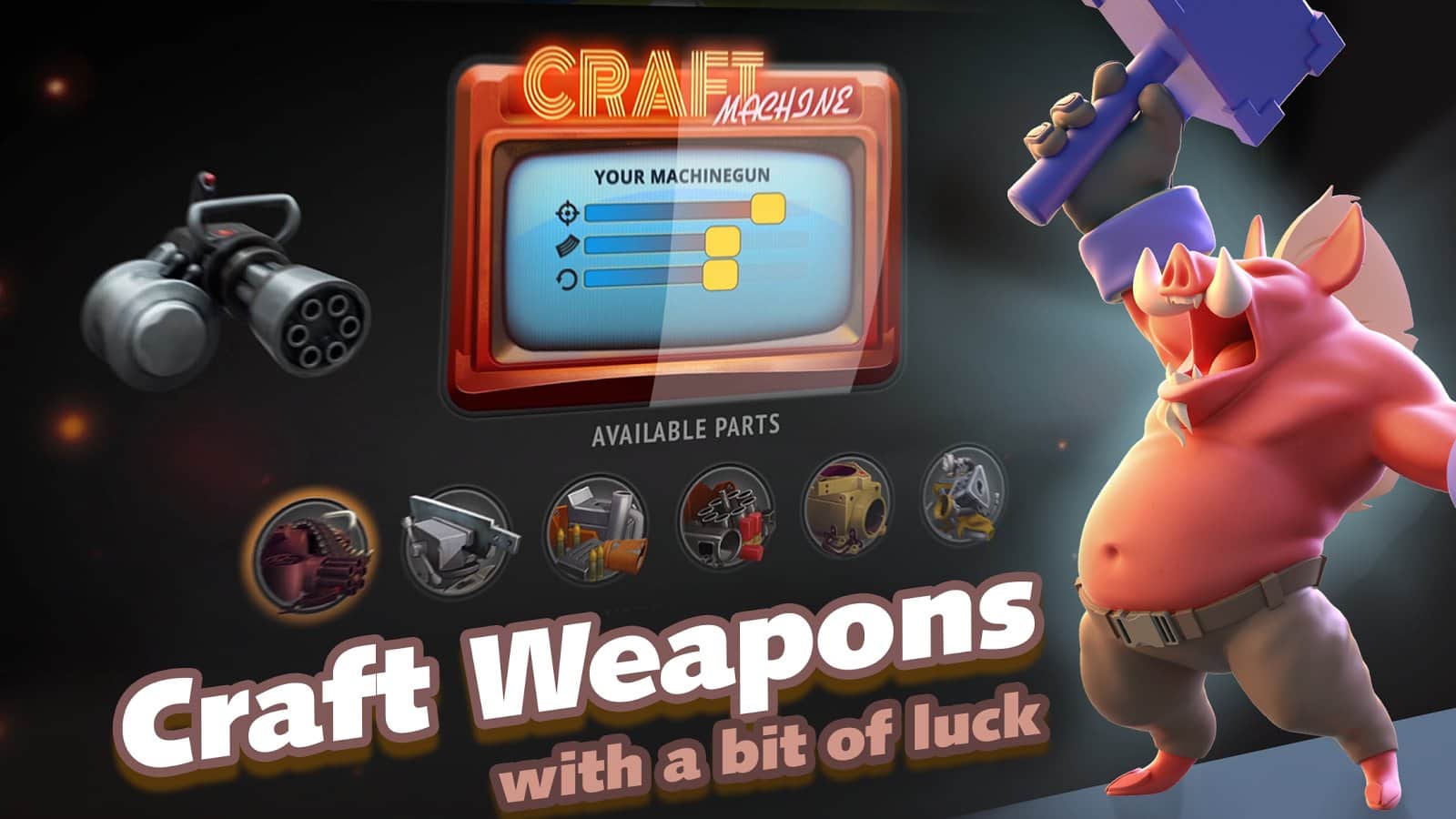 Pigbang slice dice - Весьма необычная игра жанра MOBA. Вам предстоит сражаться с реальными игроками за превосходство на карте. И сделать это очень интересным способом, в вашем распоряжении будет свин, с оружием! Создавать героя вы будете сами, начиная от внешности и одежды, и заканчивая оружием и способностями персонажа. Захватывайте объекты, уничтожайте врагов и выигрывайте матч за матчем.