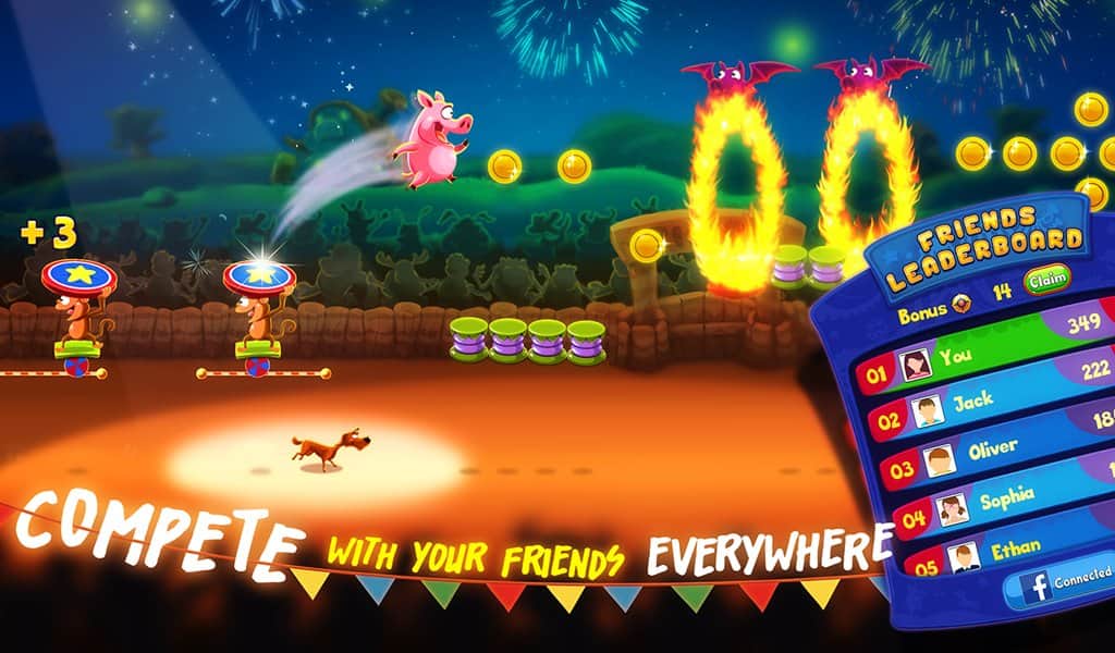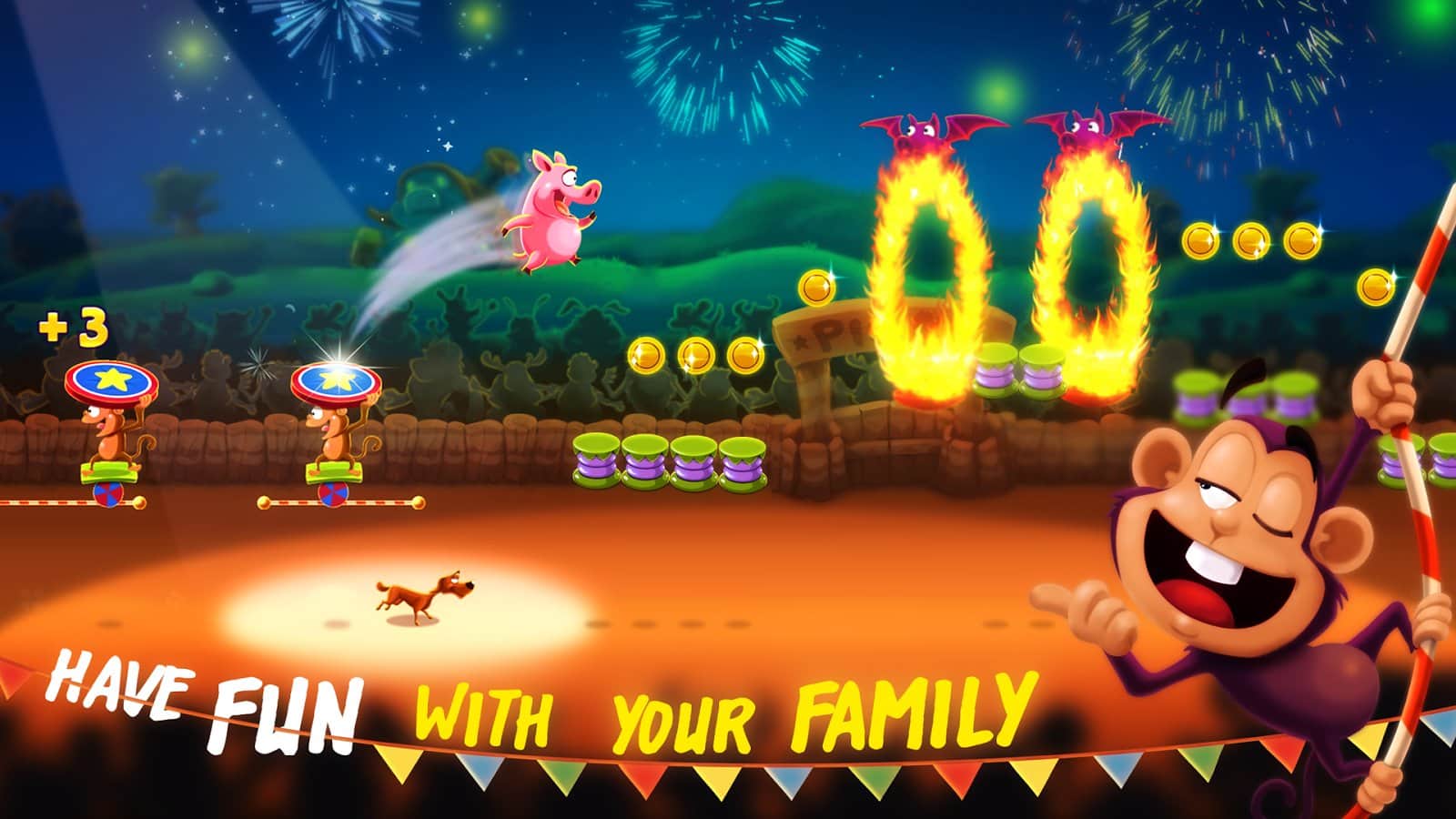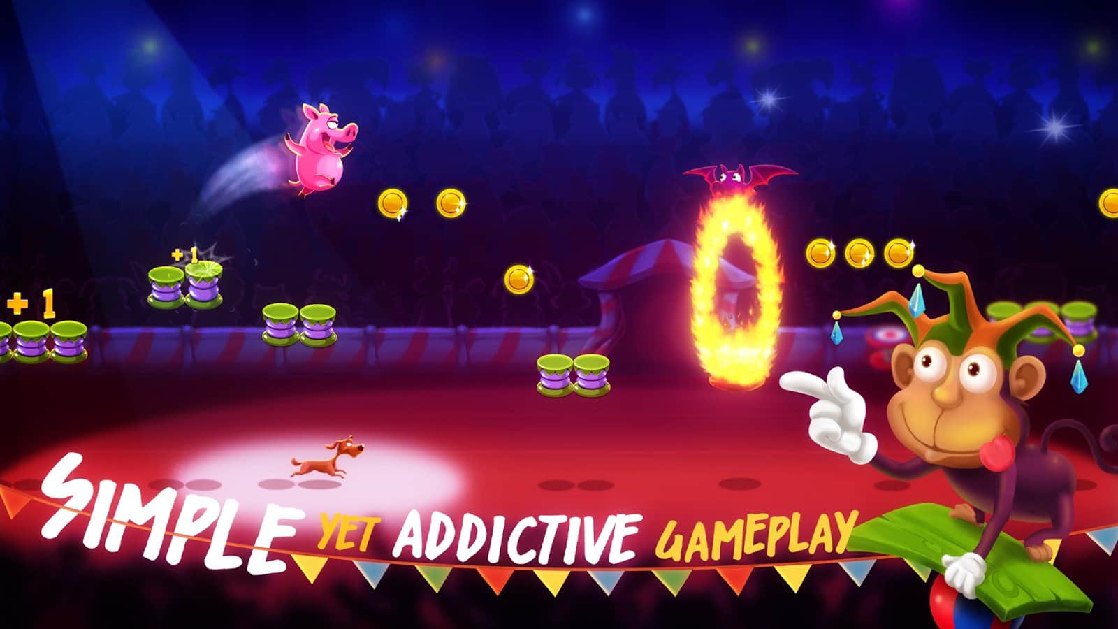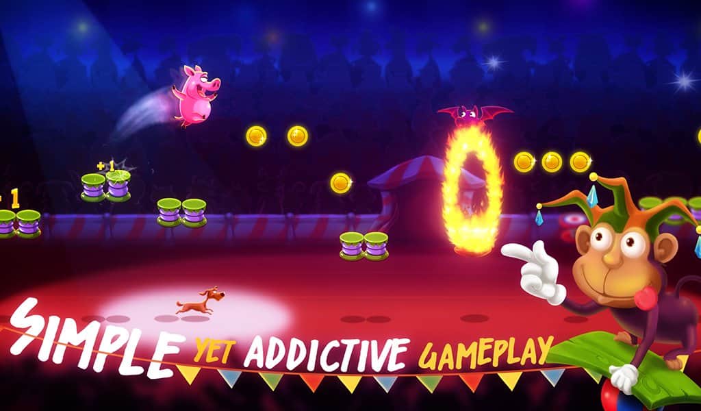 Piggy Show - забавная игра представляющая из себя некий микс из джампера и аркадного платформера. Главным героем данного проекта стал забавный и милый поросенок, мечтающий стать звездой циркового шоу и не просто шоу а самого настоящего акробатического. Для этого конечно же предстоит не мало постараться пройдя множество испытаний. Игровая механика довольно проста, управляя поросенком при помощи тапов ваша задача помочь ему пропрыгать по всем платформам при этом избегая препятствий и собирая призы. Сама по себе механика Piggy Show конечно же не нова, но вот общее исполнение, сочетающее в себе прекрасную красочную графику, отличное звуковое сопровождение, хоть и простенький, но все же сюжет, простое управление, забавных героев с лихвой компенсирует все недостатки игры.