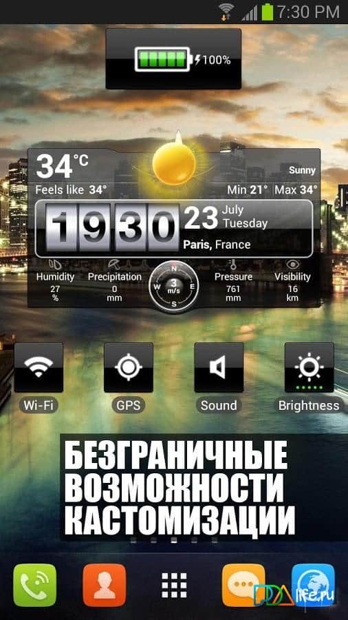 Pimp Your Screen with Widgets – великолепный набор виджетов и HD обоев для вашего андроид смартфона/планшета от разработчика Apalon. Разнообразие красивейших виджетов (обои, погодные виджеты, виджеты часов и батареи), удобные кнопки быстрого доступа - все это сделает ваше андроид устройство весьма стильным и максимально комфортным. Приятного пользования и хорошего настроения.