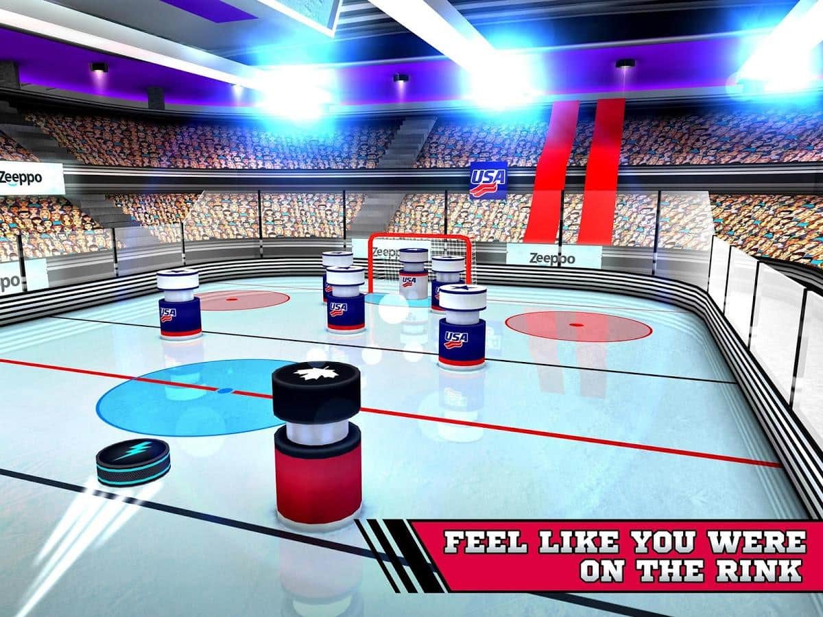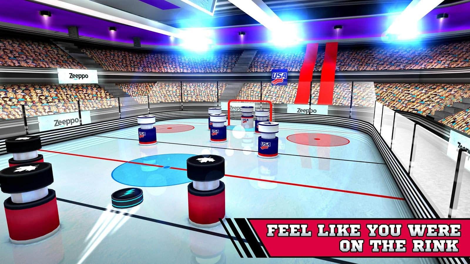 Pin Hockey - Ice Arena – хоккейная игра на андроид, где вам предстоит забивать шайбы в ворота противника. Выбирайте любимую хоккейную команду и приведите ее к победе на чемпионате мира. Тщательно продумывайте свою траекторию удара для того чтобы шайба попала точно в ворота соперников обойдя при этом защитников и вратаря. Забивайте шайбы как можно сильнее, следя при этом за скалой. Вращайте и перемещайтесь по игровому полю так чтобы выбрать оптимальную позицию для нанесения удара. Побеждайте во всех чемпионатах и приведите свою команду к победе. Игра порадует вас реалистичной физикой, различными командами и видом от первого лица.