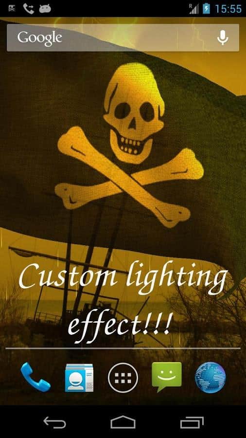 Pirate Flag Live Wallpaper – всем любителям пиратской тематики посвящается. 3D пиратский флаг на живых обоях для андроид планшетов будет гордо реять на экране вашего устройства. Выберите подходящий для себя флаг из 18 видов, установите фоновую картинку и аудио сопровождение, а так же много чего еще. Большое количество настроек и отличная анимация.