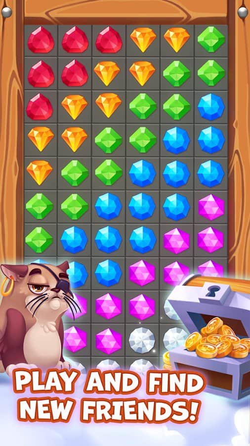 Pirate Treasures - Gems Puzzle – увлекательная игра из жанра три в ряд на андроид, где вы отправитесь на поиски пиратских сокровищ. Отправляйтесь в увлекательное путешествие вместе с героями этой игры и отыщите несметные сокровища и драгоценные камни. Ищите старинные карты, следуйте их указаниям и проходите захватывающие уровни на протяжении всей игры. Составляйте ряды из трех и более камней одного цвета и проходите увлекательные уровни помогая героям справится с различными ситуациями. Играйте с друзьями и не дайте им обойти вас на пути к богатству.