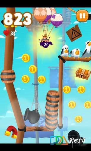 Pirates: Captain Clumsy - эта веселая аркада поведает вам о приключениях пирата по имени Вильям. Всю жизнь он отходил, грабя и наживая богатство, и вот, когда наконец решил сойти на берег и провести остаток жизни в свое удовольствие, обнаружил, что его накопленное богатство было украдено чайками. Возмущению пирата не было границ и он отправляется возвращать свое сокровище, но получается у него это очень неуклюже. Целых 26 уровней, опускаясь на воздушном шаре, вы будете монетка за монеткой собирать свое состояние, и бороться с хихикающими чайками.