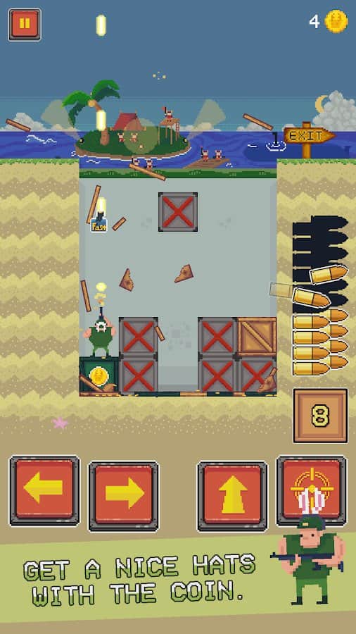 Pitfalls, Boxes And Jumps - во время войны нужно тщательно смотреть под ноги, там можно найти мины или хорошо спрятанные ямы. В одну из таких ям попали вы, поэтому пока будете выбираться, отстреливаясь от ракет и динамитов сверху. Упадет много полезных ящиков для передвижения вверх, но не забывайте что они могут вас задавить. Уничтожайте некоторые из них и перебирайтесь на следующий уровень. За удачные побеги с ям выдадут щедрые награды: прочные шлемы и монеты. Открывайте новых персонажей и протестируйте оружие, способности каждого. Чтобы процесс был проще и быстрее, попробуйте ставить ловушки!