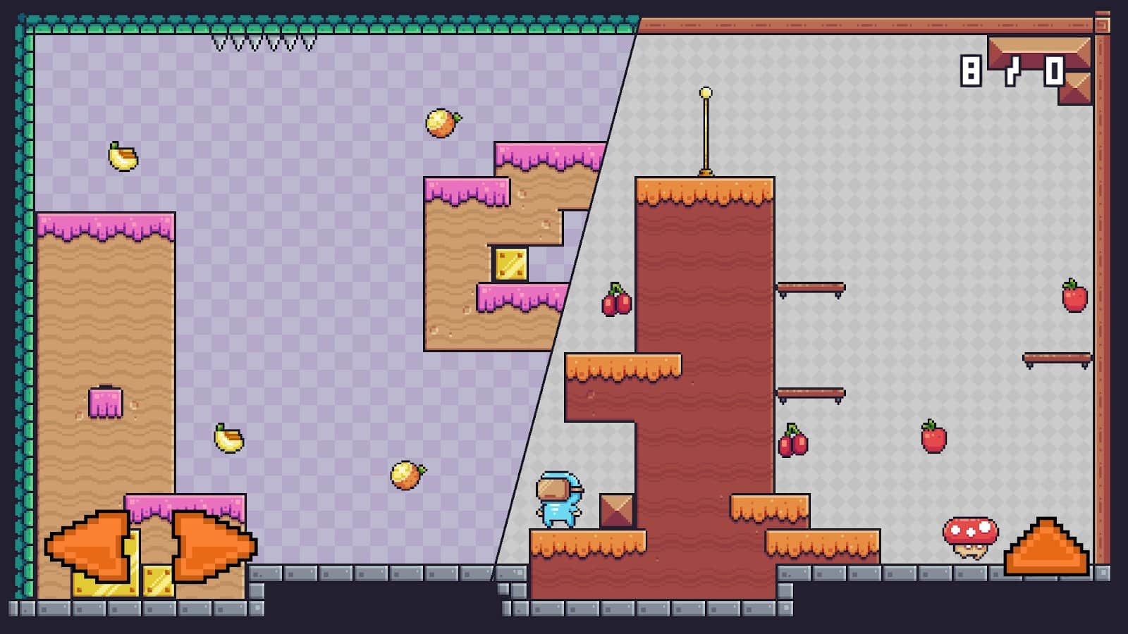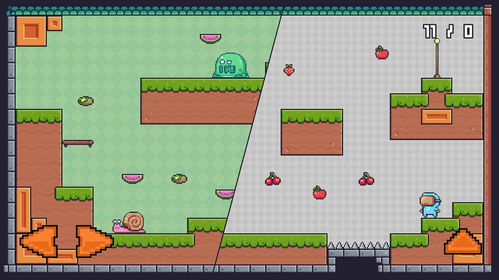 Pixel Adventure не даст вам заскучать в свободное время. Управляйте своим героем и погрузитесь в удивительный мир пикселей и красочной атмосферы непроходимости уровней!