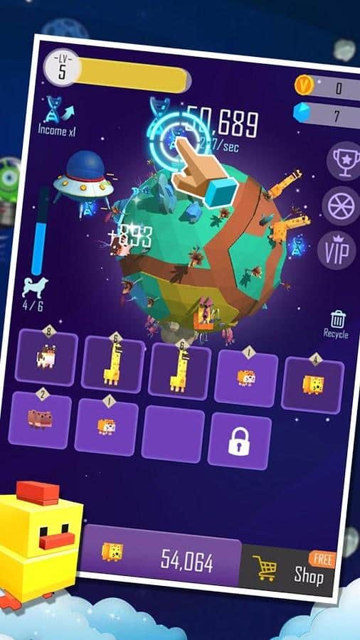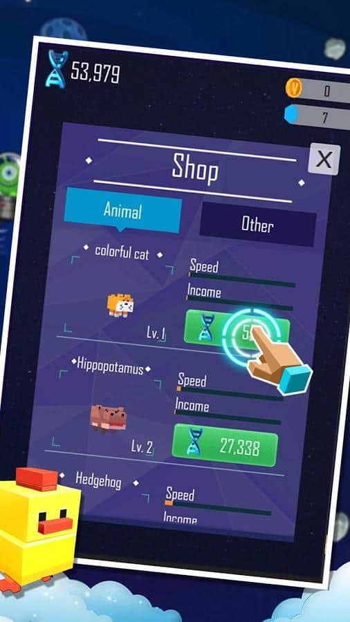Pixel Animal Planet – увлекательная игра на андроид, где вы будете заселять планету различными животными. Объединяйте одинаковых животных и получайте совершенно новые виды наблюдая при этом за их эволюцией. Просто касайтесь экрана своего телефона или планшета в нужный момент и объединяйте животных, находящихся в разных ячейках. Соберите свою неповторимую коллекцию животных и получайте бонусы и усиления. Соревнуйтесь с другими игроками за лучшие результаты и поднимайтесь все выше в таблице лидеров. Заселите планету многочисленными и разнообразными животными и получайте награды.