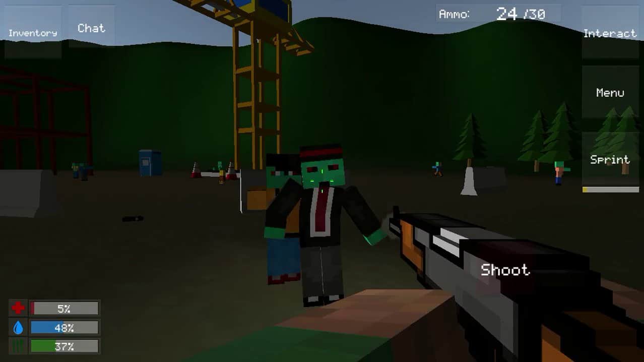 Pixel Apocalypse – симулятор выживания в опасном городе, наполненном разнообразными зомби. В этой игре вы попадете в мир после апокалипсиса и будете выживать, ища себе пропитание и оружие. Игра от первого лица с элементами позаимствованных из известной игры Minecraft, где вас ждут бесконечные часы захватывающего геймплея. Играйте в автономном режиме, либо проходите опасные миссии вместе с друзьями, повышая свои шансы на выживание. В этой игре для вас откроется огромный открытый мир со сменой дня и ночи, а также многочисленными зомби, которые попытаться вас съесть. Перемещайтесь по разнообразным локациям и старайтесь найти себе пищу и воду, а также оружие, которого в игре более 10 видов.