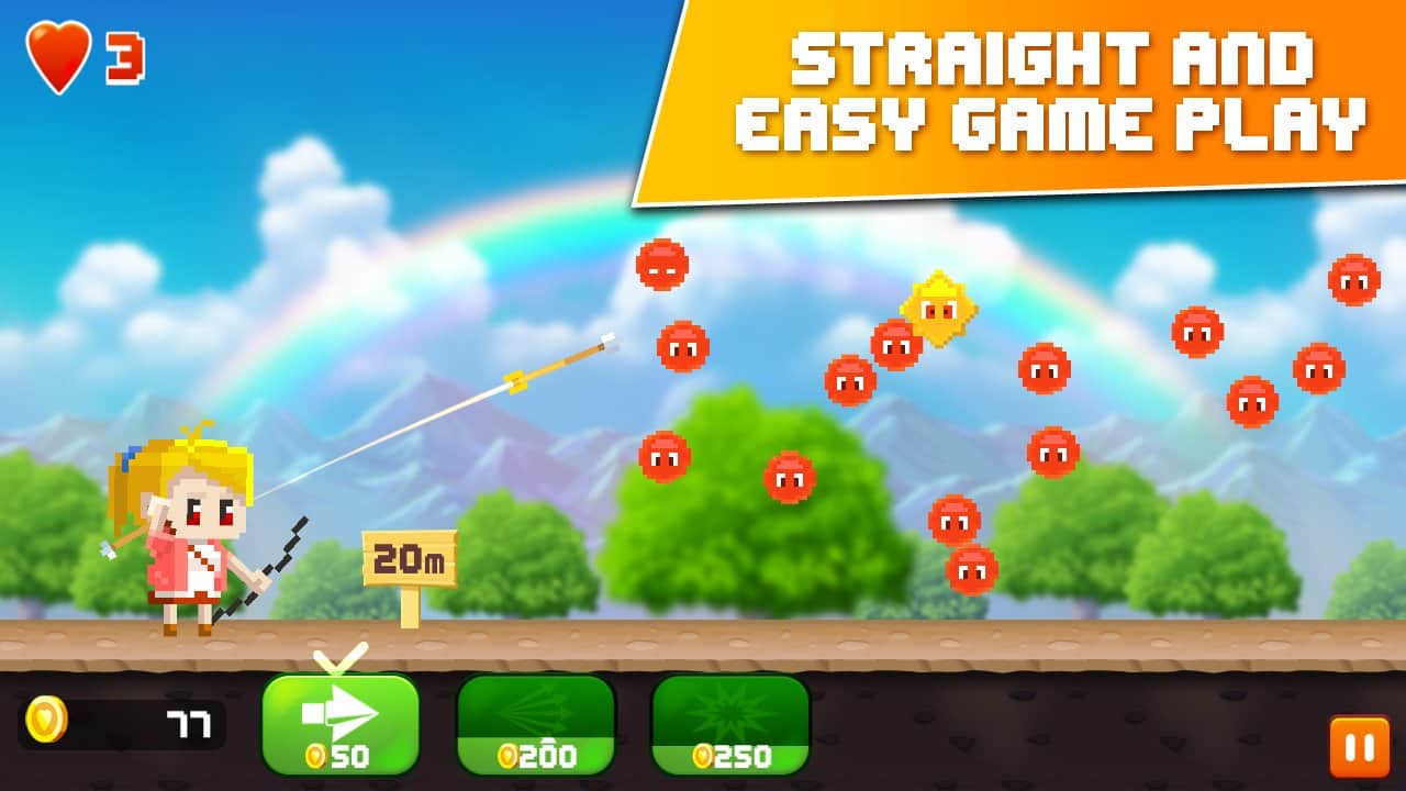 Pixel Archer King – аркада на андроид, где вы будете управлять лучником. Возьмите под свой контроль лучника и проведите его по всем уровням игры, уничтожая с помощью стрел многочисленных врагов. Ведите своего героя вперед и собирайте многочисленные монетки, которые подарят вам дополнительные навыки и улучшения. Пройдите как можно дальше в этой игре и не дайте врагам приблизиться к вам иначе у вас будут сгорать жизни. Играйте в эту игру и наслаждайтесь отличной пиксельной графикой, бесконечными уровнями и несколькими режимами игры. Нажимайте на экран своего телефона как можно чаще и добейтесь рекордных результатов.
