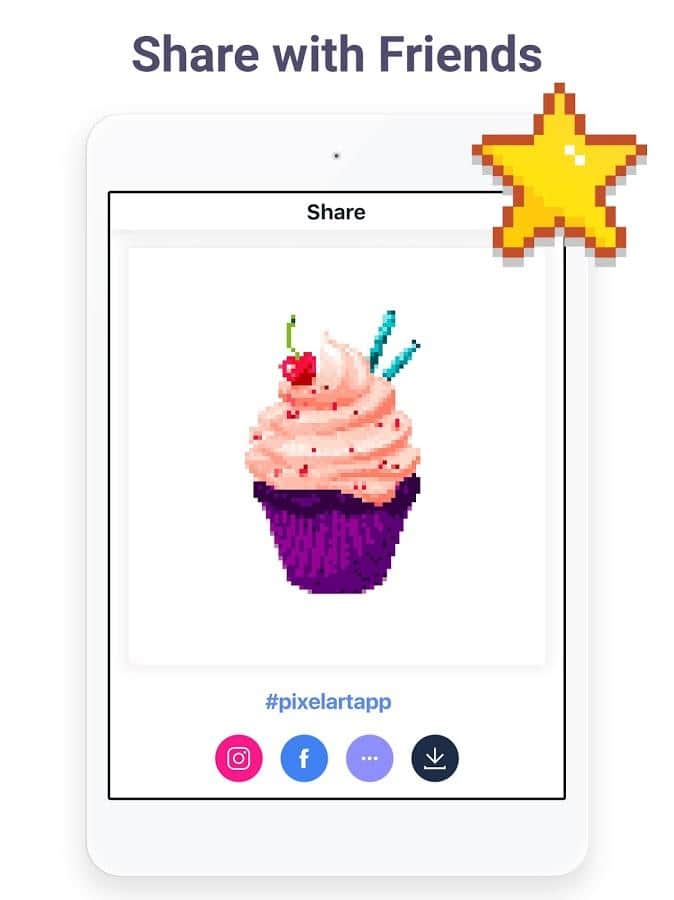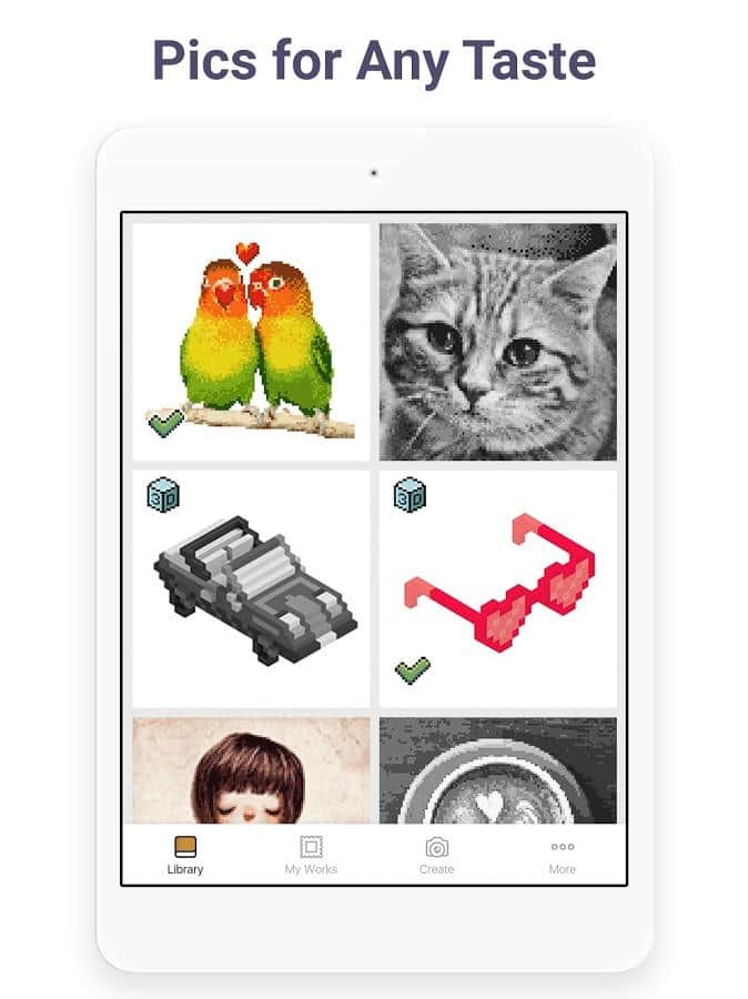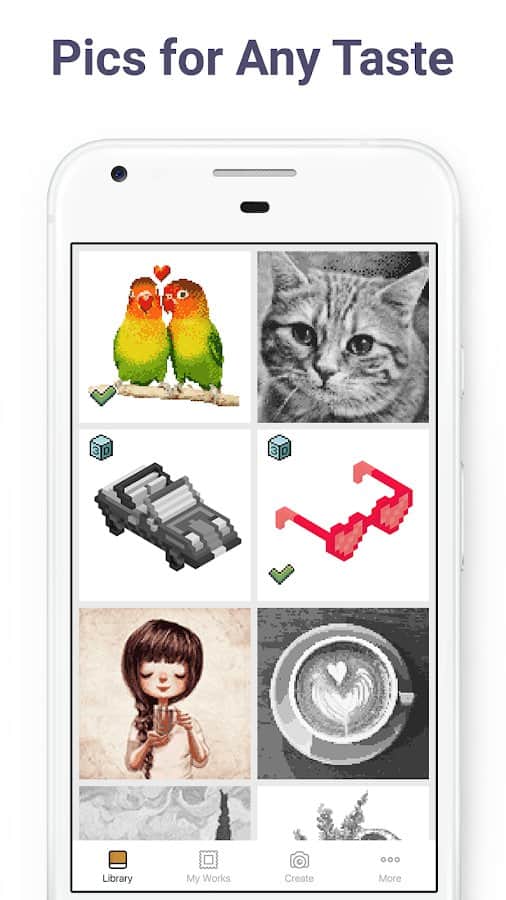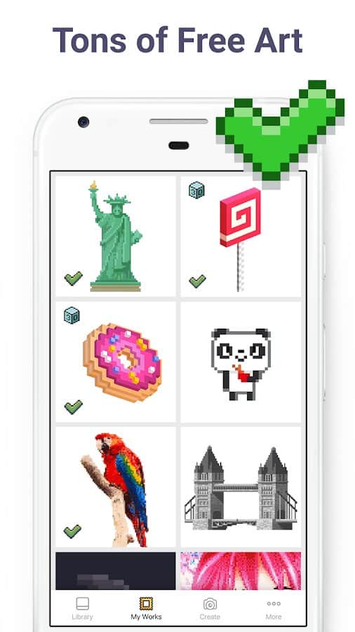 Pixel Art имеет все шансы понравиться не только детям, но и взрослым. В приложении предлагается огромный выбор пиксельных картинок, которые нужно раскрашивать по номерам. Для детей есть картинки с волшебными существами, сладостями, симпатичными зверями и игрушками, в то время как взрослых могут заинтересовать картины посложнее: с узорами, цветами, зданиями, людьми. Если вы дадите приложению доступ к камере, то сможете загружать туда собственные селфи или иные фотографии, чтобы потом раскрашивать уже их.