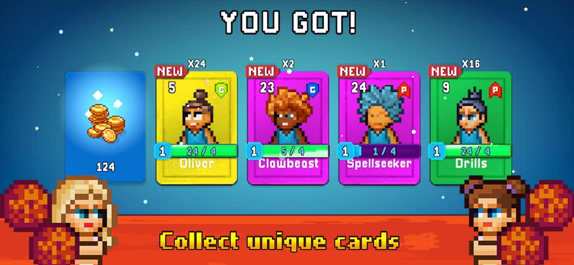 Оттуда падает либо золото за которое мы прокачиваем героев, либо карточка которая даёт нам нового героя, либо она просто даёт некоторое количество до прокачки твоего старого..