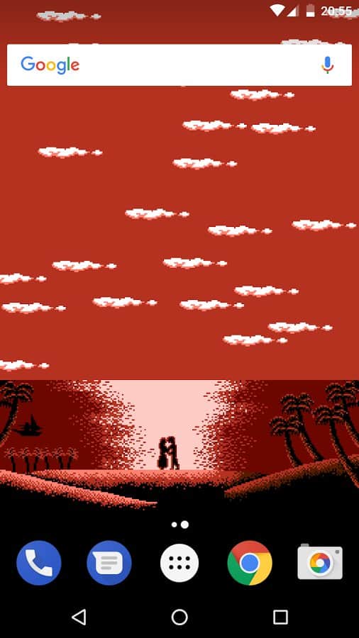 Pixel Beach Live Wallpaper – живые обои на андроид, с графикой в стиле заставок Dendy. Эти обои будут отображать на вашем экране телефонов или планшетов различные картинки, которые будет зависеть от времени суток. На картинках будет изображен тропический остров с парой влюбленных, которые проводят здесь свой медовый месяц. Наблюдайте за всем происходящим на экране и с помощью настроек добавляйте облака, звезды и птиц. Эти обои не займут у вас много места в памяти и порадуют вас полным отсутствием рекламы. Всего в этих обоях представлено 14 разнообразных сцен, которые не дадут вам скучать.