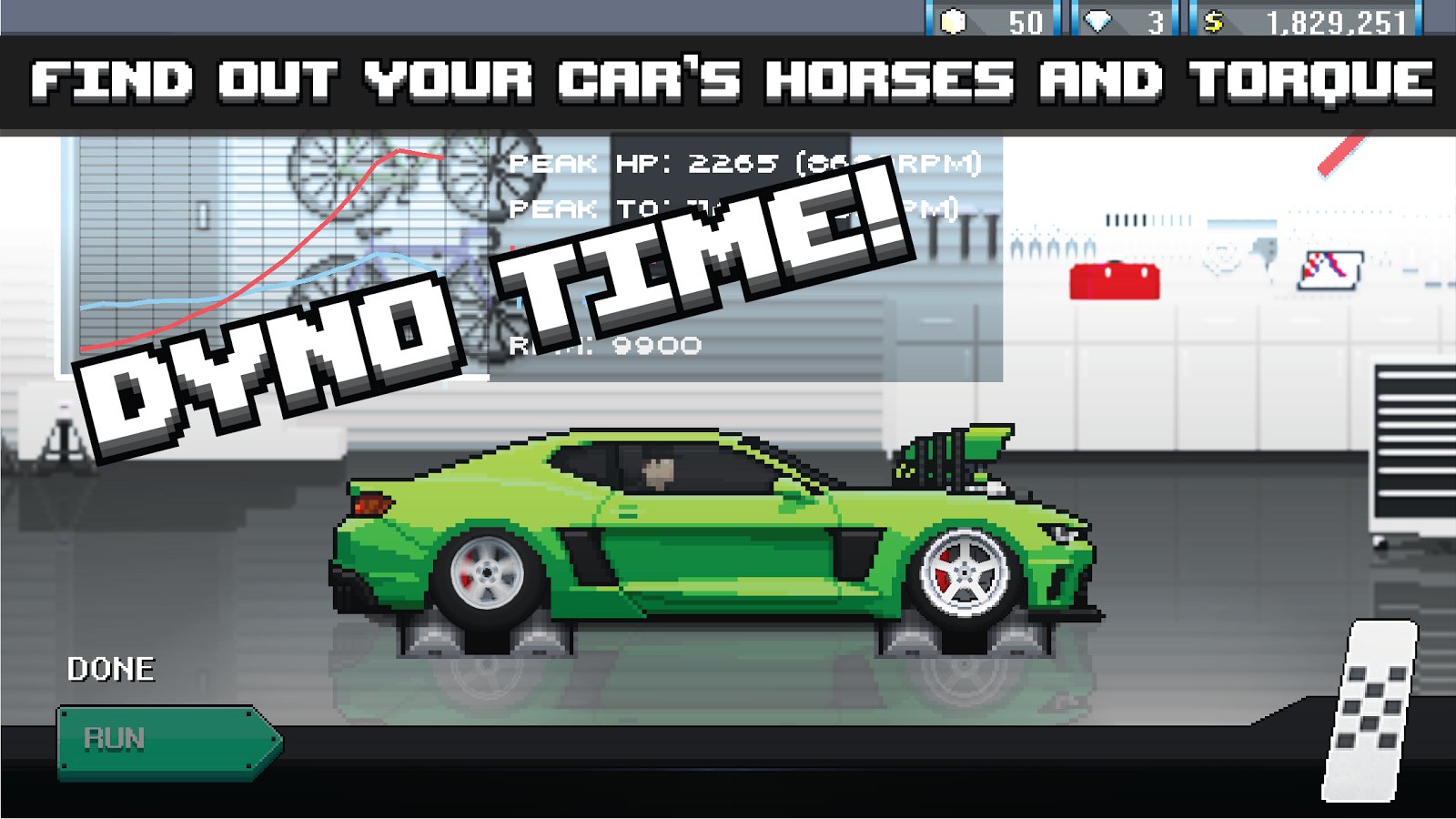 Pixel Car Racer - игра представляющая из себя нечто совершенно новое и оригинальное. Для начала стоит сказать что это некое сочетание между песочницей и гонками. Но обо всем по порядку. Для начала вам необходимо построить небольшой гараж, а уж затем можно приступать к работе над автомобилями постепенно превращая небольшое предприятие автомобильную мастерскую своей мечты. Благо для этого у вас будет все необходимое. В вашем распоряжении будет около 50 различных автомобилей и более 1000 различных запчастей к ним, так что обслуживание авто в ваших руках. Помимо работы в гараже у вас будет возможность испытать свои творения на трассе в нескольких режимах и вот тут-то от вас потребуется все ваше мастерство. Тонкая настройка двигателя, подборка деталей все может повлиять на результат.
