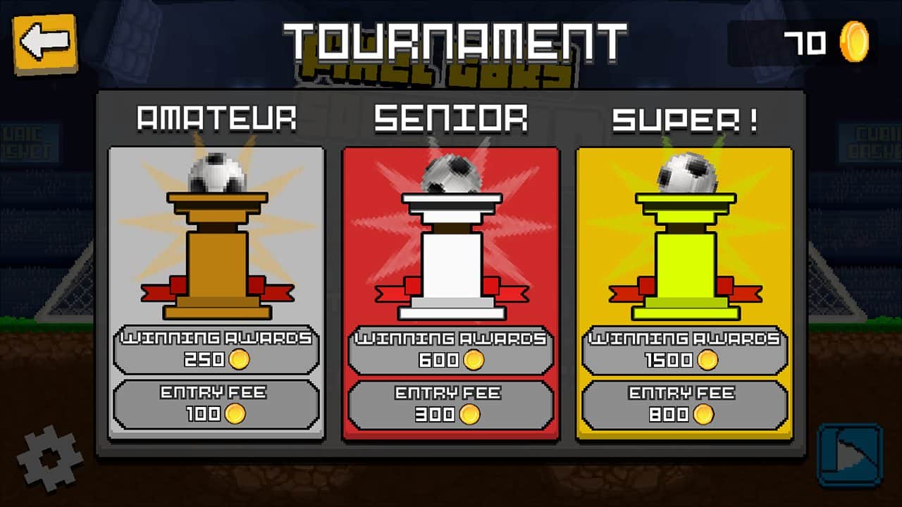 Pixel Cars. Soccer – увлекательная игра на андроид, где вы будете играть в автомобильный футбол. В этой игре вы возьмете под свой контроль мощный автомобиль и с помощью него будете забивать мячи в ворота противника. Примите свое участие в различных турнирах и матчах и старайтесь забить как можно больше голов своему сопернику. Эта игра порадует игроков разнообразными уровнями, где вы будете прыгать по высоким холмам, врезаться в своего противника и проделывать невероятные трюки. Бросайте вызов опытному компьютеру или играйте со своими друзьями на одном устройстве.