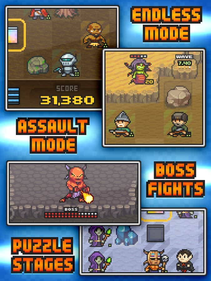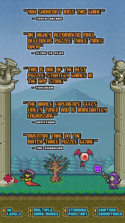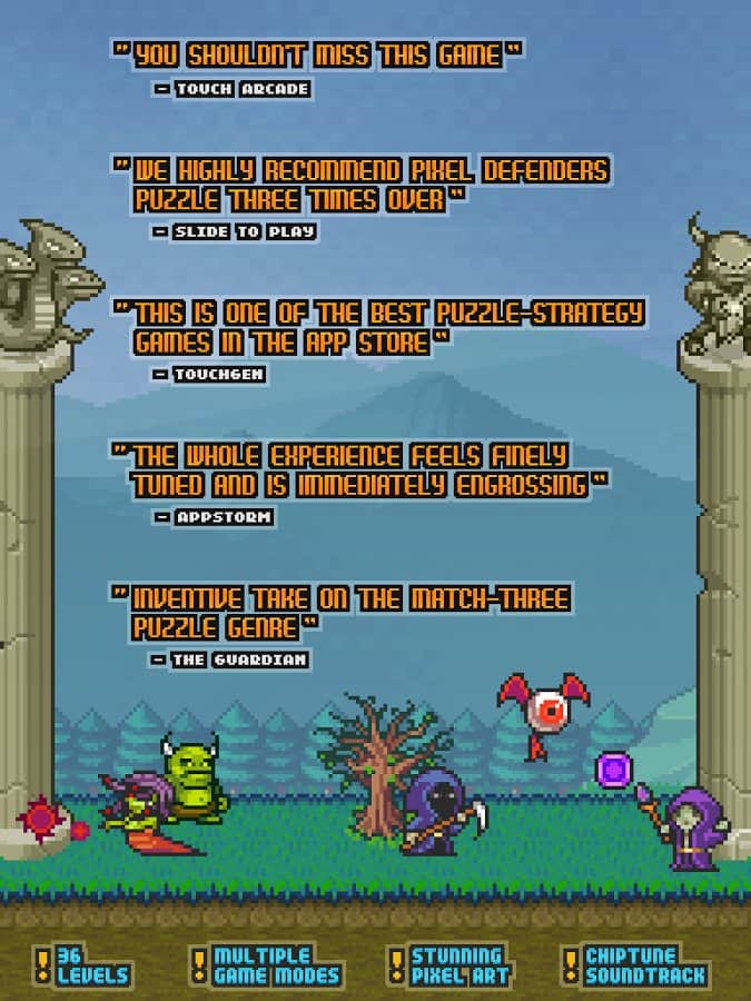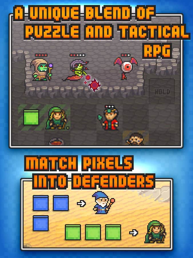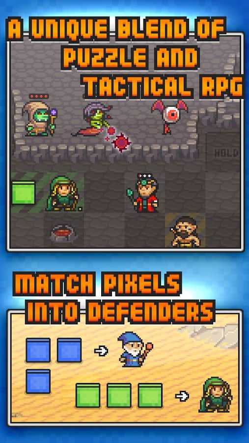 Pixel Defenders Puzzle - Пиксельная стратегическая головоломка на андроид. Вас ждут интересные головоломки вперемешку с РПГ боями. В игре собран увлекательный геймплей, пиксельная графика, и интуитивно понятное управление. Соберите войска, разбейте вражеские силы и спасите мир.