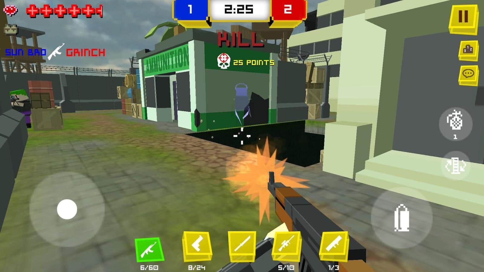 Pixel Fury: Multiplayer in 3D – многопользовательский шутер на андроид, действия которого происходят от первого лица. В этой игре вы перенесетесь в пиксельный мир, где выбудете перемещаться по многочисленным локациям и сражаться с игроками со всего мира. Присоединяйтесь к тысячам игрокам по всему миру и проверьте на деле все режимы игры FPS, Deathmatch, Team Deathmatch и захват флага. Зарабатывайте очки, открывайте новые виды оружия и настраивайте персонажа по своему усмотрению.