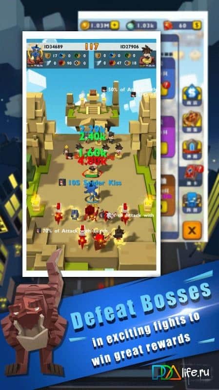 Pixel Guardians-Auto Fight - игра которую довольно трудно отнести к определенному жанру, здесь присутствуют элементы стратегии, аркады, ролевки и популярного сегодня направления кликеров. Подобный микс придает геймплею разнообразие и оригинальность. И так, теперь поподробней, события игры разворачиваются в кубическом мире, ваша задача собрать армию войнов, хорошенько их подготовить, обучить, снарядить и уж затем отправлять в бой. Сражения проходят при участии игрока, ваша задача как можно быстрее тапать по экрану, тем самым нанося удары по сопернику. Сочетание разнообразия жанров и отличной стилизованной графики без сомнения придется по вкусу большинству игроков.
