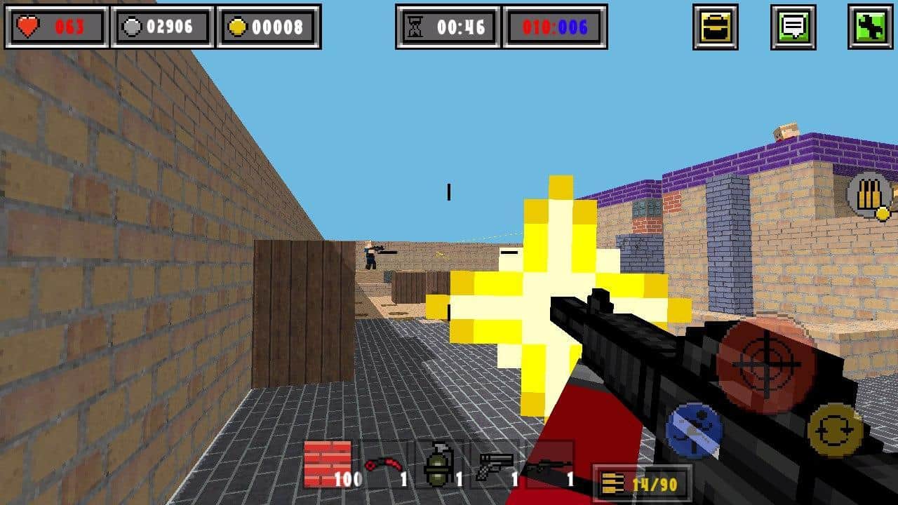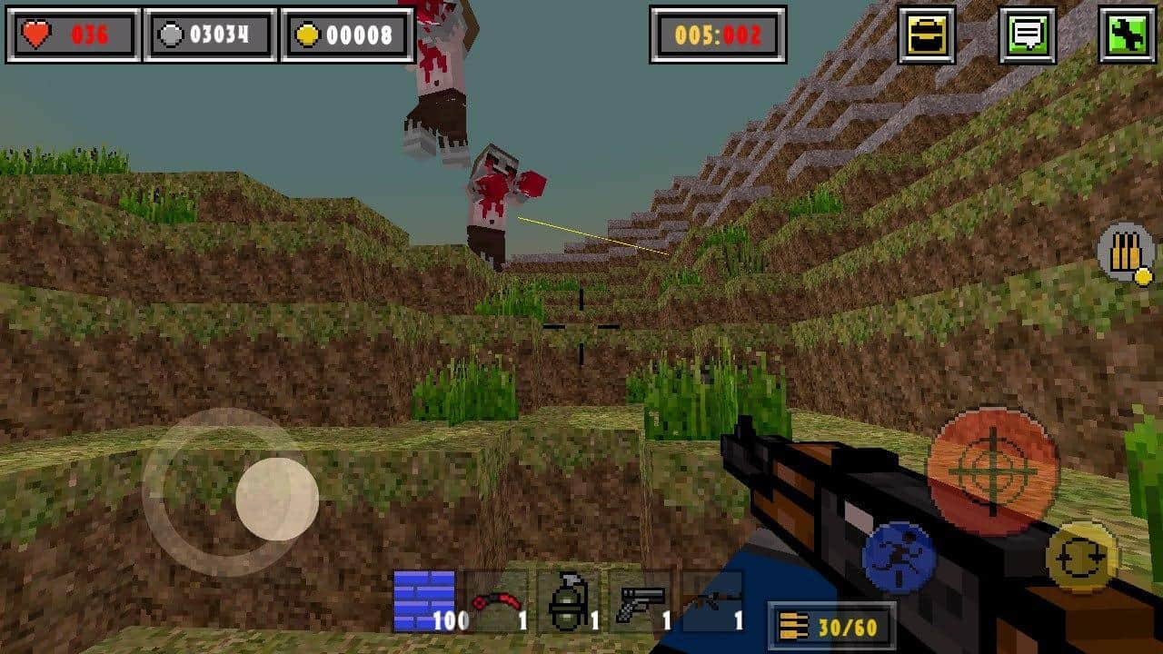 Pixel Gun Strike: Combat Block – экшен с блочной графикой на андроид, где вы будете участвовать в смертельных битвах. Возьмите в руки современное оружие и перемещайтесь по разнообразным картам, выслеживая своего противника. Исследуйте различные локации игры и старайтесь найти укрытие для того чтобы защититься от выстрелов противника. В игре представлено несколько режимов игры где вы сможете сражаться с игроками со всего мира или объединившись с друзьями отбиваться от орд ходячих мертвецов. Также по мимо сражений, вы сможете заниматься строительством и испробовать новые карты, создавая свои уникальные миры.