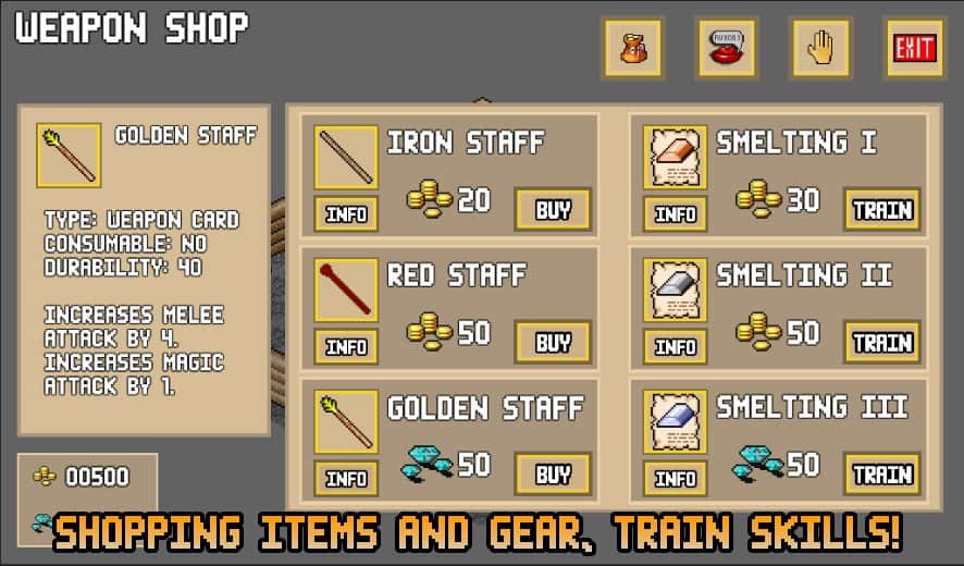 Готовы пройти увлекательное приключение в пиксельном мире, где будете играть за главного героя? Исследуйте неизведанные территории, сражайтесь с легкими и сложными врагами, проходите интересные задания, собирайте полезные вещи, начните создавать что-то новое на рабочем столе, думайте над головоломками и легко решайте их, покупайте оружие или другие предметы в ларьках, играйте в мини-игры, используйте дополнительные возможности в боях и крутите колесо фортуны с возможностью получить полезные вещи.