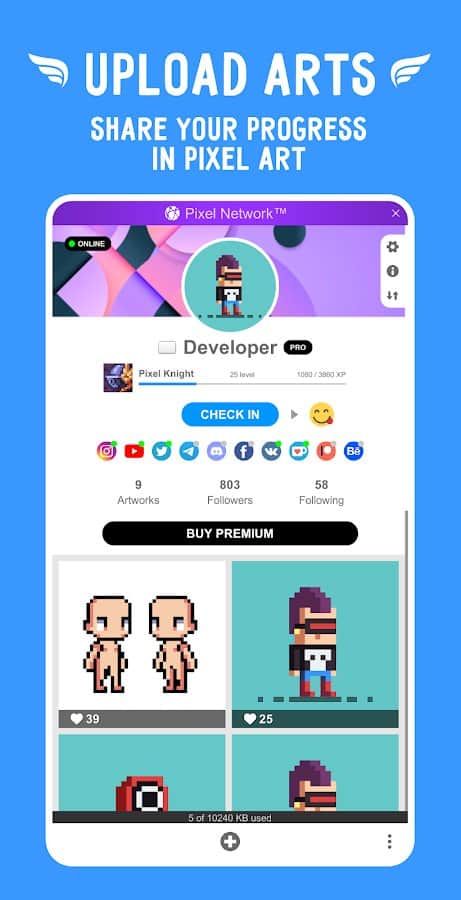 Присоединяйтесь к Pixel Network и станьте частью яркого сообщества пиксельных художников и любителей искусства. Независимо от того, в какой программе вы создаете свои работы, мы рады приветствовать вас в нашем творческом пространстве. Попробуйте свои силы во встроенном мини-редакторе — это идеальная возможность начать свой путь в мире пиксель-арта. Не хотите рисовать. Тогда просто наслаждайтесь коллекцией удивительных пиксельных работ и анимаций, созданных талантливыми участниками сообщества. В приложении каждый найдет что-то для себя — будь то творчество, вдохновение или просто удовольствие от просмотра крутых арт-проектов.