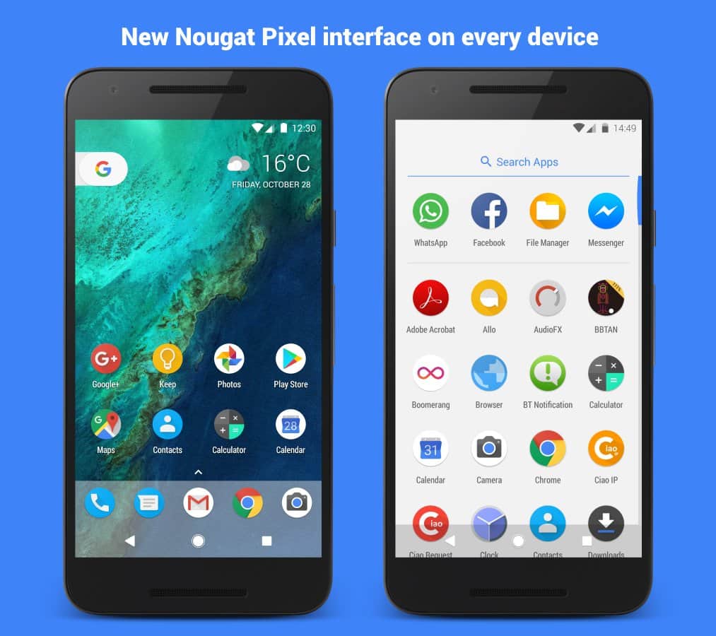 Pixel Nougat UI - CM12/CM13 - Всегда мечтали иметь такой же рабочий стол как и в последней обновлении Android 7.0 Теперь эта мечта может стать реальностью, с помощью новенького приложения, что содержит в себе тему Nougat, вы полностью окунетесь во все прелести 7 android. Здесь вы найдете и кучу иконок, и множество различных настроек, с помощью которых сможете задать всё на свое усмотрение. Приложение поддерживается на большинстве современных устройств, и постоянно обновляется.