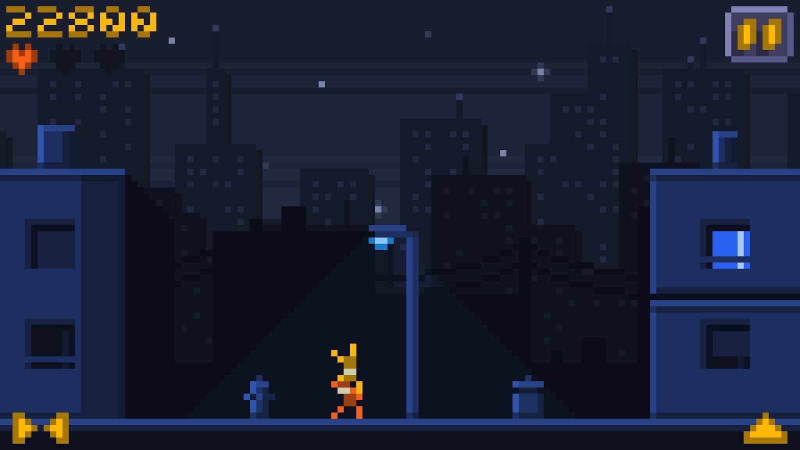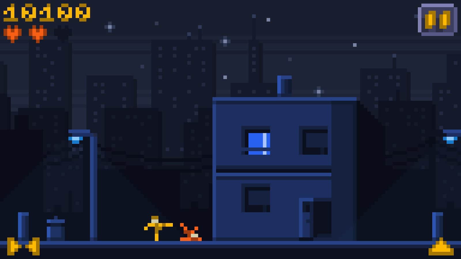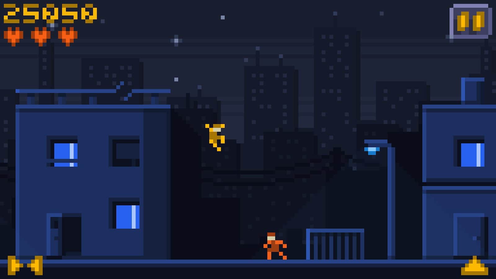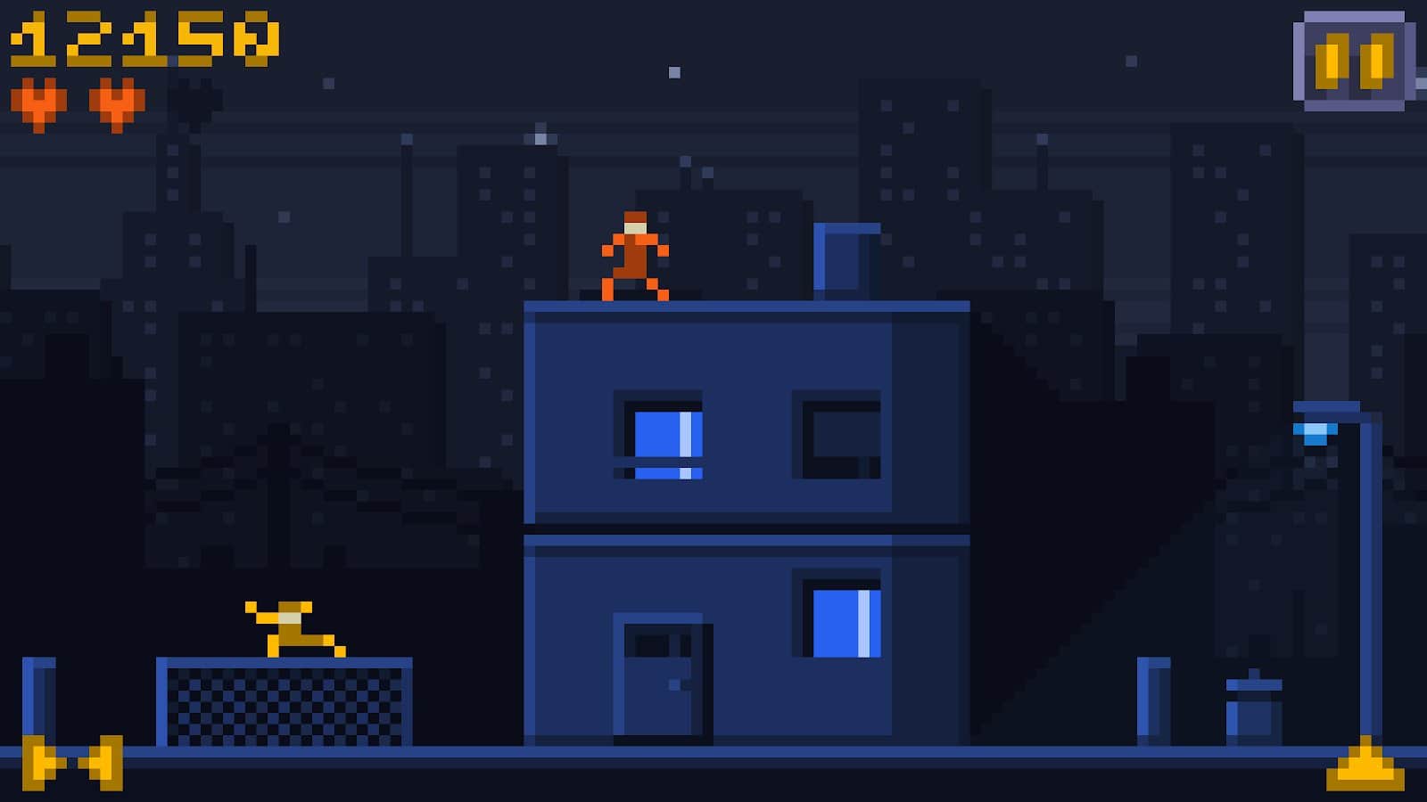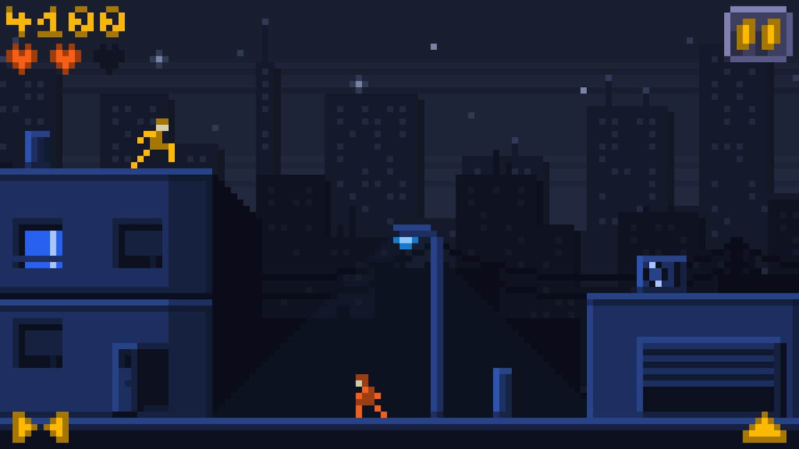 Pixel Parkour Fight - красочный пиксельный раннер с приятной музыкой и графикой. У героя имеется три жизни, которые теряются при столкновении об препятствия/получении удара от врага и прочего. Управление простое и понятное - Влево, вправо и прыжок. Вы также можете совершать двойные прыжки, чтобы залезть на здание и атаковать врагов нажав на них при приближении. Игра бесконечная и в ней есть таблица лидеров. У этого разработчика довольно интересные игры которые мало весят. Советую поиграть в эту игру. Она хорошая и сделана с душой.