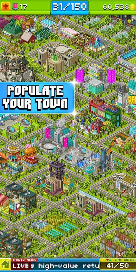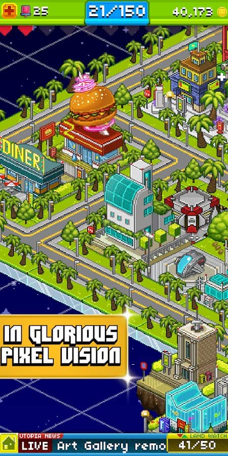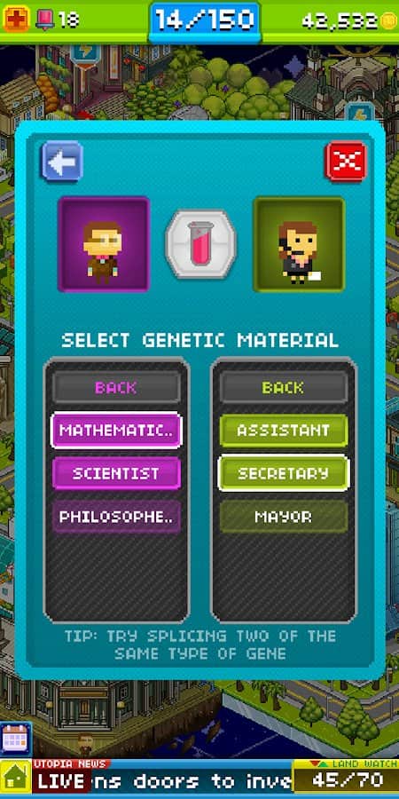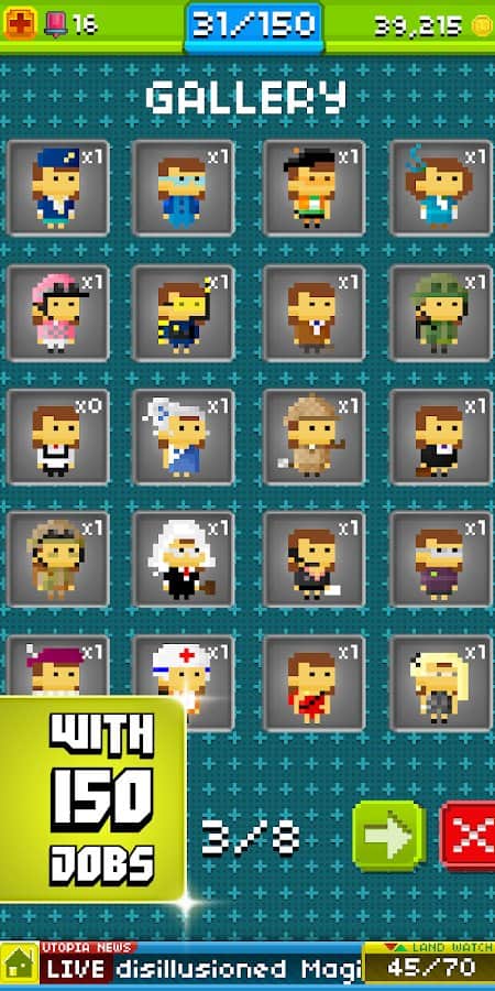 Pixel People – отличная стратегия на андроид, где вы окажитесь в мире Утопии. В этой пиксельной игре вашей задачей будет создавать город и его жителей. Объединяйте гены жителей города и их навыки чтобы создать новых пиксельных людей. Облагораживайте свой город и делайте все возможное чтобы он процветал. Создайте более 300 новых жителей города каждый из которых будет иметь уникальный внешний вид и навыки. Создавайте рабочие места для людей и тем самым зарабатывайте больше денег. Получайте бонусы и усиления за пройденные уровни и создавайте свой неповторимый мир.