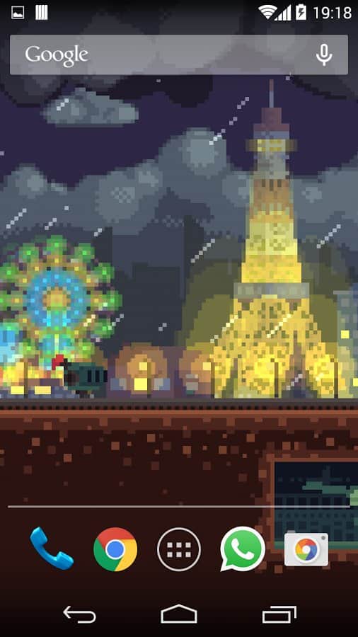 Pixel Road Wallpaper DONATE – живые обои с забавным пиксельный миром на андроид. Эти обои перенесут вас в сказочную страну, где живут различные герои игр, которых вы сможете наблюдать на своем экране телефона или планшета. Перемещайтесь по различным городам и странам и с помощью настроек меняйте погодные условиям, а также смену дня и ночи. Также в настройках выбирайте понравившихся вам персонажей и включайте или выключайте движение машин и различного транспорта. Обои подойдут как для горизонтальной, так и для вертикальной ориентации. С помощью контроля качества картинки вы сможете экономить расход батареи.