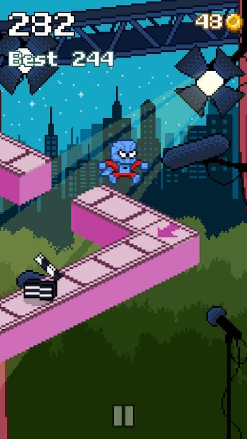Наверное всем уже надоели пиксельные игры, которые очень похожие друг на друга и нет разнообразия в выборе. Но Pixel Stars – необычная и в какой-то мере уникальная игра, где карты постоянно меняют обороты и переход на новый ракурс. Вы можете менять свои образы каждую игру на кого угодно: пират, аватар, Марио, человек-паук, рыцарь, ниндзя, певец, принцесса, кинозвезда и прочие персонажи. Прыгайте через обрывы, не попадайтесь на шипы и другие ловушки, собирайте золото и предметы на пути, поворачивайтесь на поворотах.