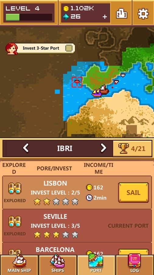 Pixel Voyage - приключенческая игра действия которой разворачиваются в 16 веке, веке великих географических открытий и конечно же расцвете пиратства. Ваша задача управляя парусным судном путешествовать по бескрайним просторам мирового океана, отыскивать сокровища, исследовать мир, сражаться с пиратами, посещать порты. По мере развития и накопления средств вы получите возможность не только нанять более обученный экипаж, но и заметно расширить свой флот, что в свою очередь позволит зарабатывать больше денег, которые можно потратить на модернизацию кораблей или же на расширение бизнеса. Игровая механика представляет из себя нечто среднее между кликкером и таппером, чем быстрее вы будете тапать по экрану, управляя флотом и событиями в портах, тем быстрее будут происходить все процессы.