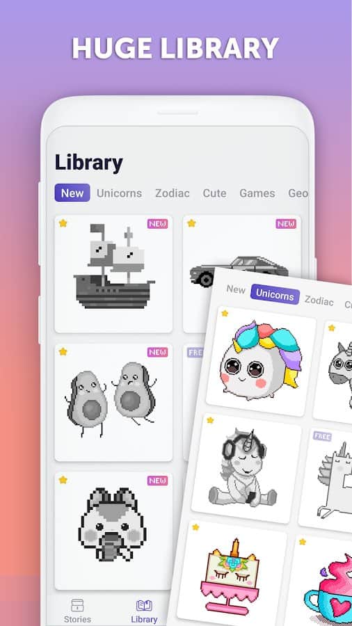 PixelArt: Color by Number, Sandbox Coloring Book – занимательная игра на андроид, где вы будете раскрашивать картинки по номерам. Теперь создавать пиксельные изображения стало намного интереснее и проще. Просто касайтесь экрана с выбранным цветом и закрашивайте нужные вам клеточки, при этом приложение не даст вам выйти за границы. Играйте в эту игру в любое свободное время и делитесь радужными и яркими картинками со своими друзьями. Игра также порадует вас огромной библиотекой где каждый найдет для себя подходящие изображения животных, цветов, праздничные украшения и другое. Выбирайте подходящий уровень сложности начиная от простого для детей до сложного.