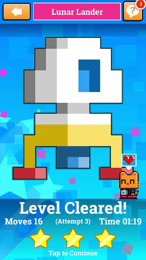 Pixelgrams: Pixel Puzzles - Необычная кошка хочет как можно быстрее пройти все 300 подготовленных уровней, чтобы узнать какие препятствия в виде головоломок её ждут на каждом из уровней! Под милый саундрек вам придется помочь собрать ей заготовки фигур, которые будут нарисованы перед вами. Внизу у вас находится определенное количество кубиков некоторых форм, а сверху их надо сложить вместе, чтобы заполнить пустое пространство и получить рисунок. За выполнение задачи вы получите три звезды, но если будете слишком медлить, их станет меньше.