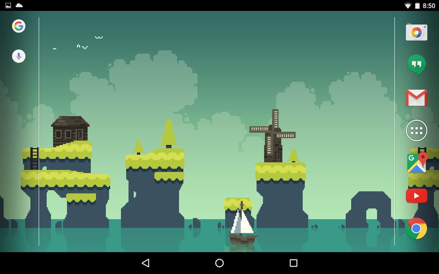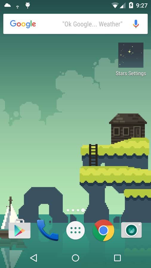 Pixelscapes Wallpaper – живые обои на андроид телефоны или планшеты состоящие из трех анимированных картинок. Эти живые обои сделаны в пиксельной графике и откроют перед вашим взором три совершенно непохожие друг на друга картинки. Первые обои перенесут вас на необитаемые заснеженные острова с одиноким стоящим на них домиком. Вторые обои порадуют вас яркой зеленью и одиноко стоящим домиком и мельницей, а третьи обои перенесут вас на необитаемый остров с пальмами и многочисленными рыбами и акулами. Наслаждайтесь красивыми рисованными картинками и гладкой анимацией.
