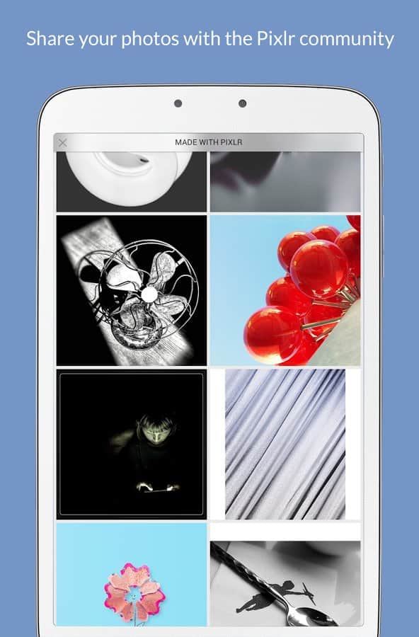 Pixlr Express - это простой и в то-же время мощный графический редактор для андроид. В программе более 600 эффектов, их будет достаточно что-бы персонализировать любую фотографию. Редактор позволяет быстро обрезать, изменять размер, исправлять любые фотографии, удалять эффект красных глаз, отбеливать зубы и множество других эффектов.