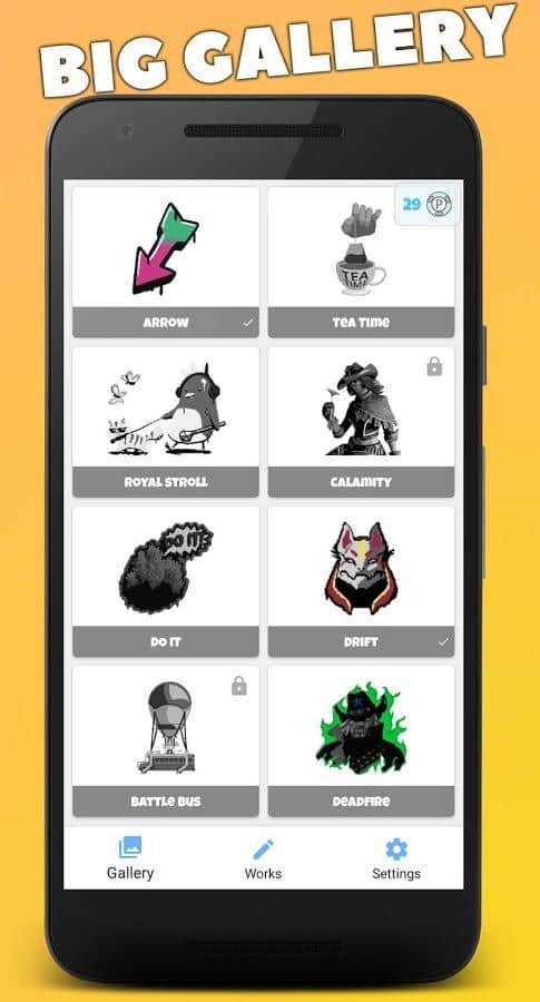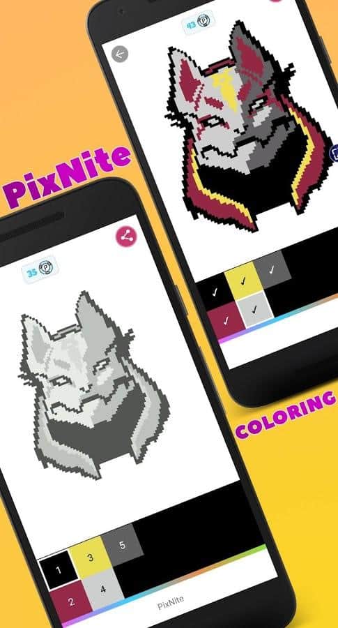PixNite - Color by number – раскраска на андроид, где вы будете раскрашивать пиксельные картинки. Эта игра отлично подойдет как для взрослых, так и для детей каждый в ней найдет для себя что-то интересное. В этой игре вы найдете огромно количество различных картинок, для раскрашивания, которые взяты из ретро игр. Раскрашивайте картинки используя для этого различные цвета и режимы и устанавливайте понравившуюся картинку в качестве обоев на рабочий стол. Приложение содержит множество изображений из Battle Royale, а также танцы, эмоции, граффити, оружие, предметы из Боевого пропуска всех сезонов и не только.