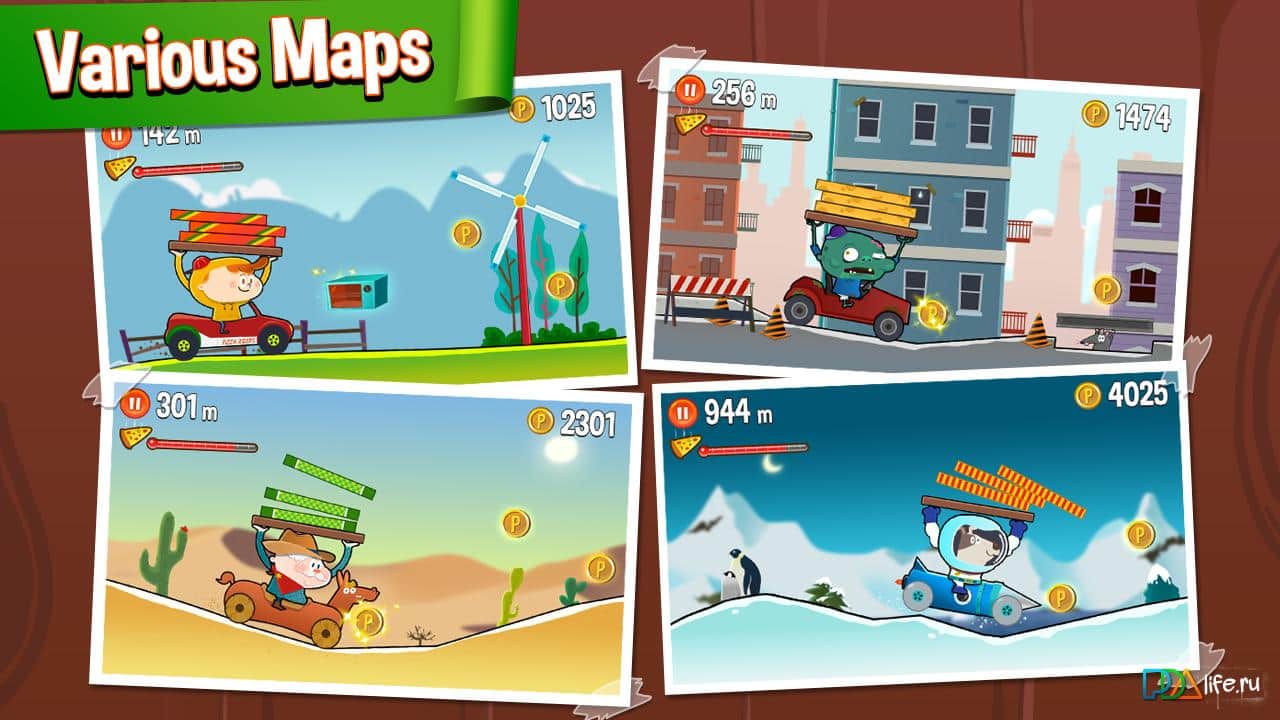 Pizza Rider – весёлый раннер на андроид, в котором вам необходимо доставить пиццу да адресата и при этом не рассыпать её по дороге. В вашем распоряжении только ваша сноровка и самодельное транспортное средство для осуществления вашей задачи.