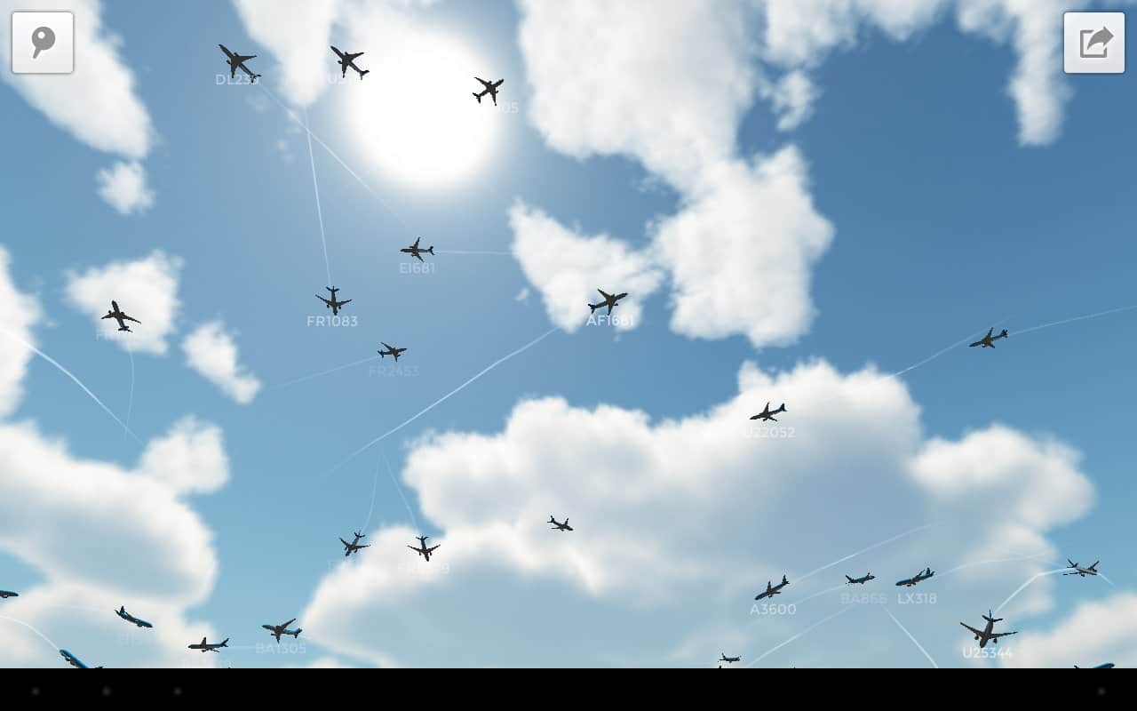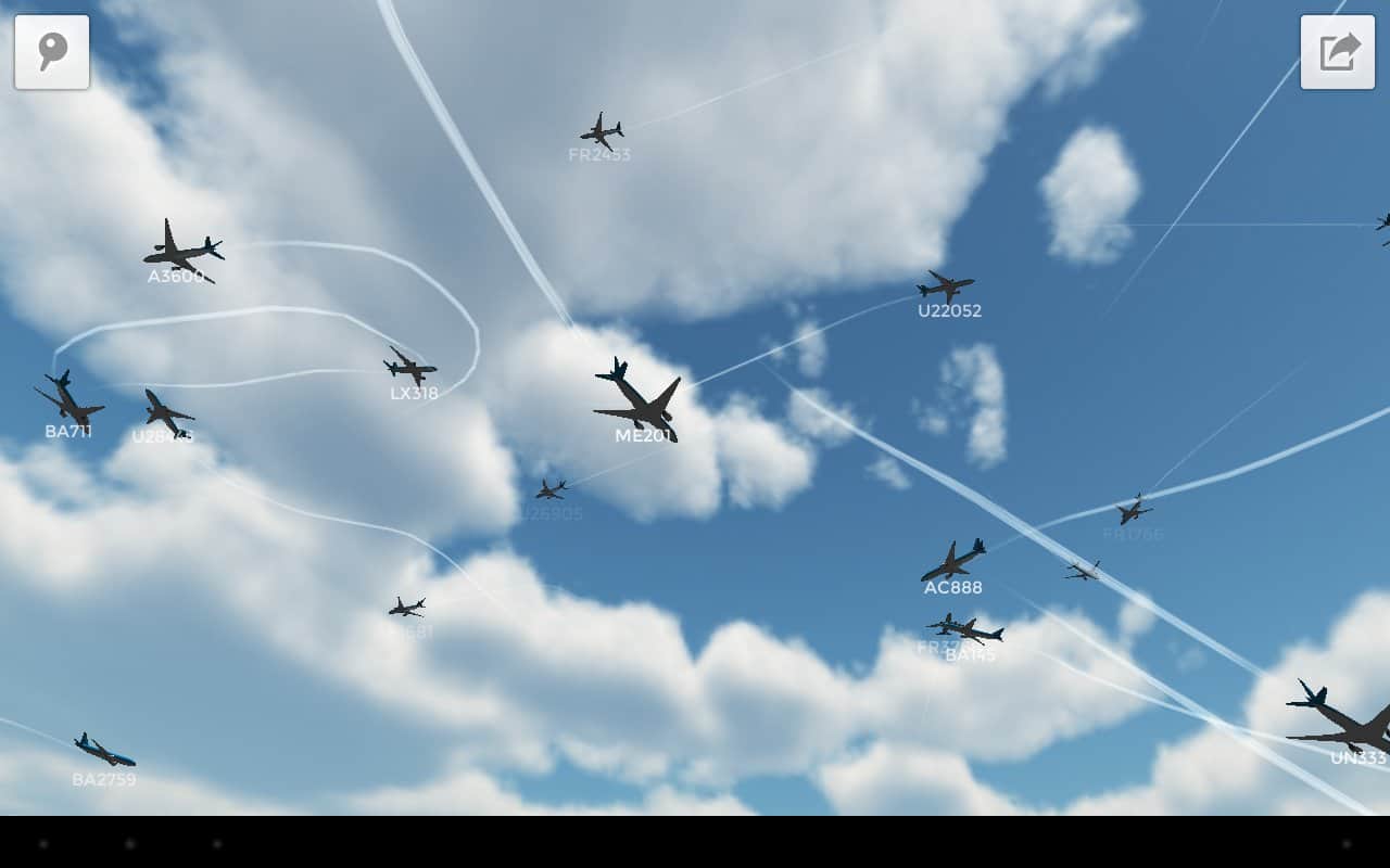 Plane Finder 3D – интересное приложение от разработчиков pinkfroot limited для вашего андроид устройства, благодаря которому вы можете отслеживать путь более 1200 самолетов по всему миру в реальном времени. Отличная анимационная графика, хорошо прорисованы небо и местность, предоставляются номера рейсов и маршрут полетов, а так же логотипы и позывные авиакомпаний.