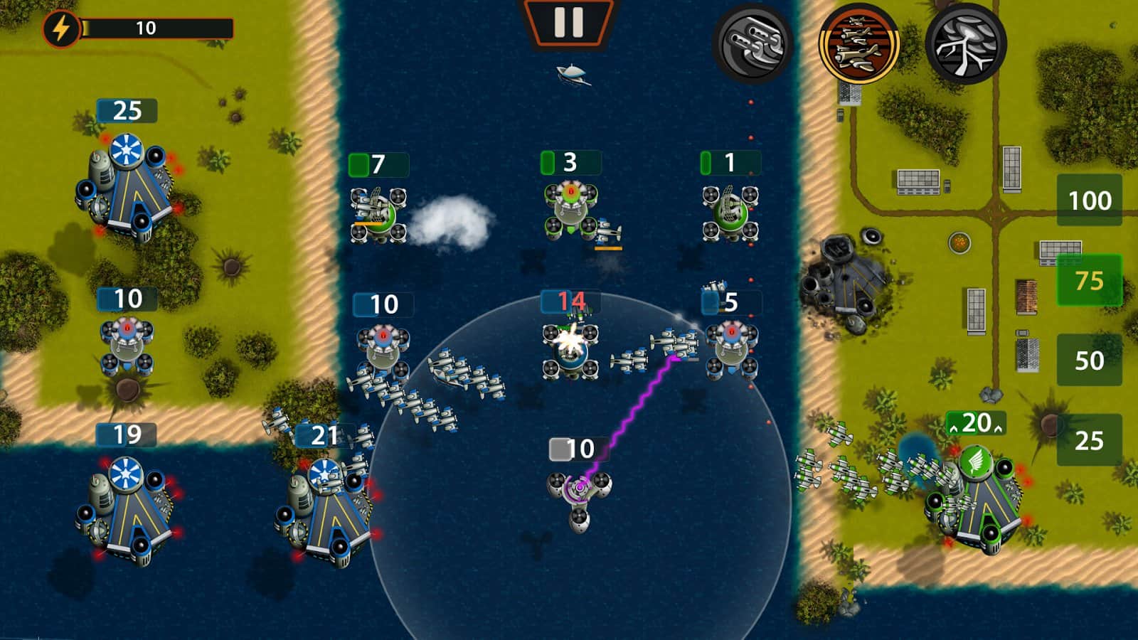 Plane Wars 2 – вторая часть увлекательной стратегии на андроид, где вашей задачей будет защитить свою базу от врагов. В этой игре вы найдете пять режимов игры, начиная от классического и заканчивая режимом с двойной сложностью, также игра порадует вас большим набором баз, которые обладают уникальными свойствами. Помимо всех остальных баз в игре добавлены базы с ускоренным производством, базы с телепортом, базы позволяющие призывать подкрепление и базы которые способны модифицировать самолеты, все это позволит вам получить максимум удовольствия от игры и попробовать в деле различные стратегии.