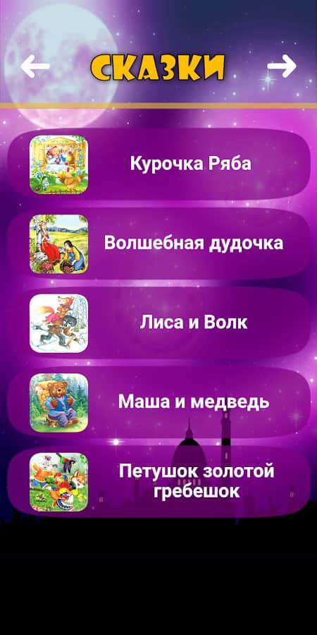 Маленькие волшебники так любят погружаться в мир сказок, что ищут их повсюду. С приложением "Планета детства" вы сможете создать для них атмосферу волшебства, заставить с головой окунуться в сюжет и сопереживать героям. В приложении собраны самые любимые и известные сказки для всех возрастных категорий, детские песни и колыбельные, которые помогают быстро засыпать и снять накопившееся за день напряжение. Слушайте в режиме оффлайн, наслаждайтесь профессиональной озвучкой, выбирайте понравившуюся сказку и включайте ее снова. Малышу понравится приятный голос диктора, красочные картинки, а вам не придется каждый раз переключать сказку, это происходит автоматически. Платные подписки и назойливая реклама отсутствуют.