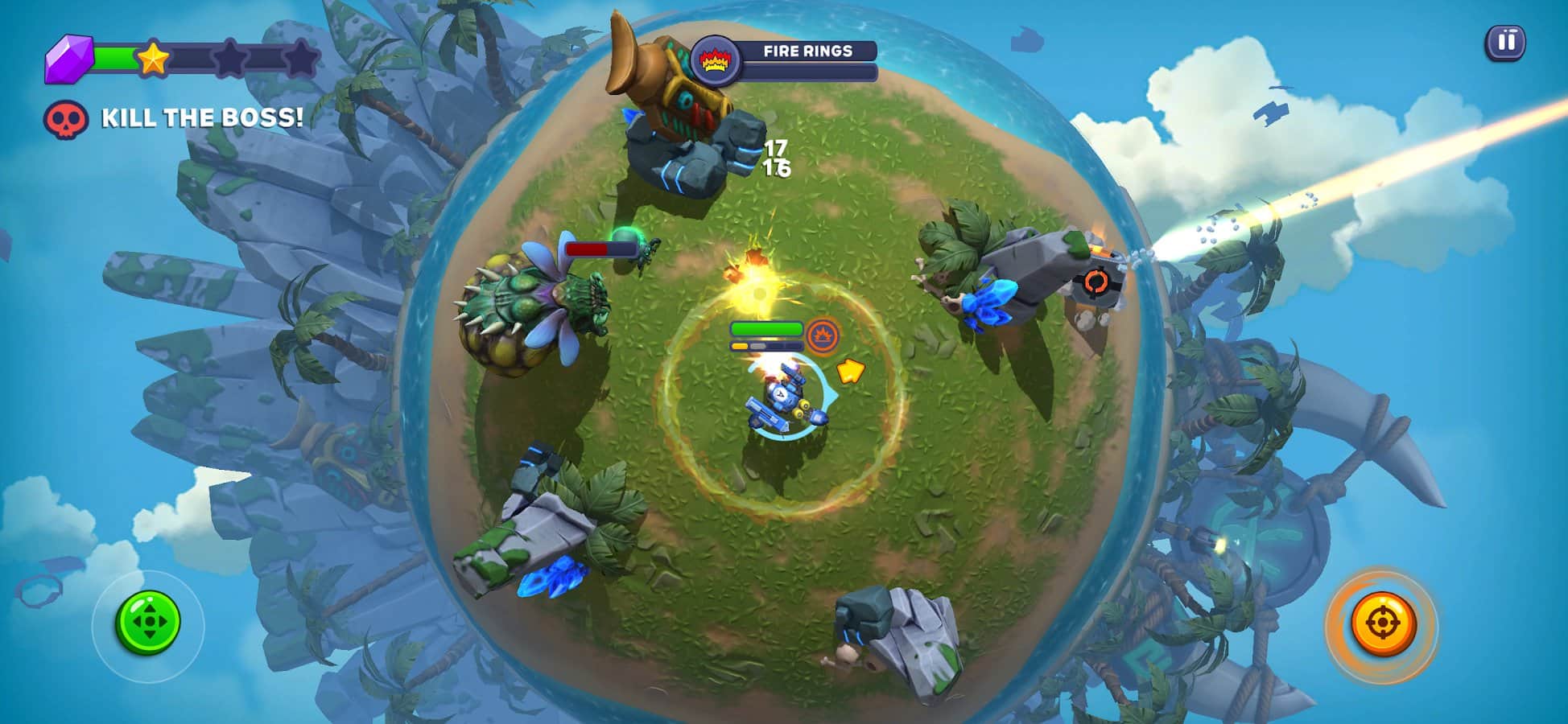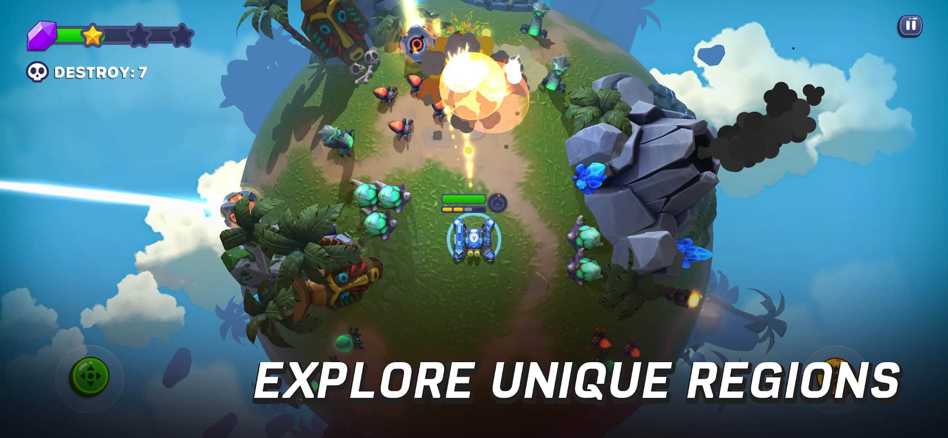 Прикольная игрушка правда для меня показалась нудноватой, управление и вправду очень похоже на бравл старс но в принципе это единственное что их связывает. Сюжета вообще нет, что, как, куда ничего не понятно, тебе дали робота всё - убивай пришельцев. И меня ещё смутили названия локаций - Вальхалла, какого черта робот делает на Вальхалле, ну понятное дело то что Вальхалла в мифологии и то что в играх может различатся но все же. Рекламы нет и это очень приятно, говоря о контенте то его маловато, хотелось бы больше ивентов, возможно мультиплеер и тп. А так без этого всего для меня очень скучно играть, ничего толком не меняется, просто планеты иногда другие, а ну и враги новые и то какого то удивления приятного не наблюдалось. Единственное что похвально, то это графон - он четкий, а так в целом игра для меня сыровата, надеюсь разработчики будут выпускать обновления.