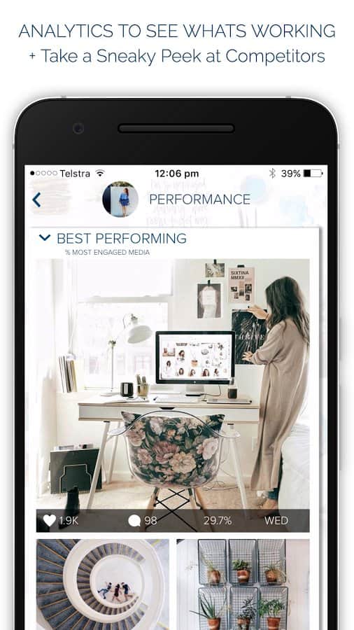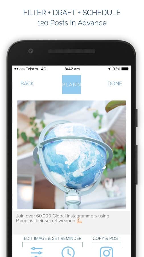 Plann : Instagram Scheduler - Уникальное приложение, которое поможет вам управлять вашей галереей в Instagram. С его помощью вы сможете загружать картинки и фотографии не по одной, а целыми наборами, выберите 10 штук и по нажатию одной кнопки они все поочередно будут добавлены. Изменяйте подписи и добавляйте хештеги, всё это очень просто и удобно собрано в одном меню. В этом приложении нет ничего лишнего, максимально простой интерфейс делает его одним из лучших в своем роде. Так же вы можете запланировать заливку постов наперед, и добавлять их в отдельные промежутки времени.