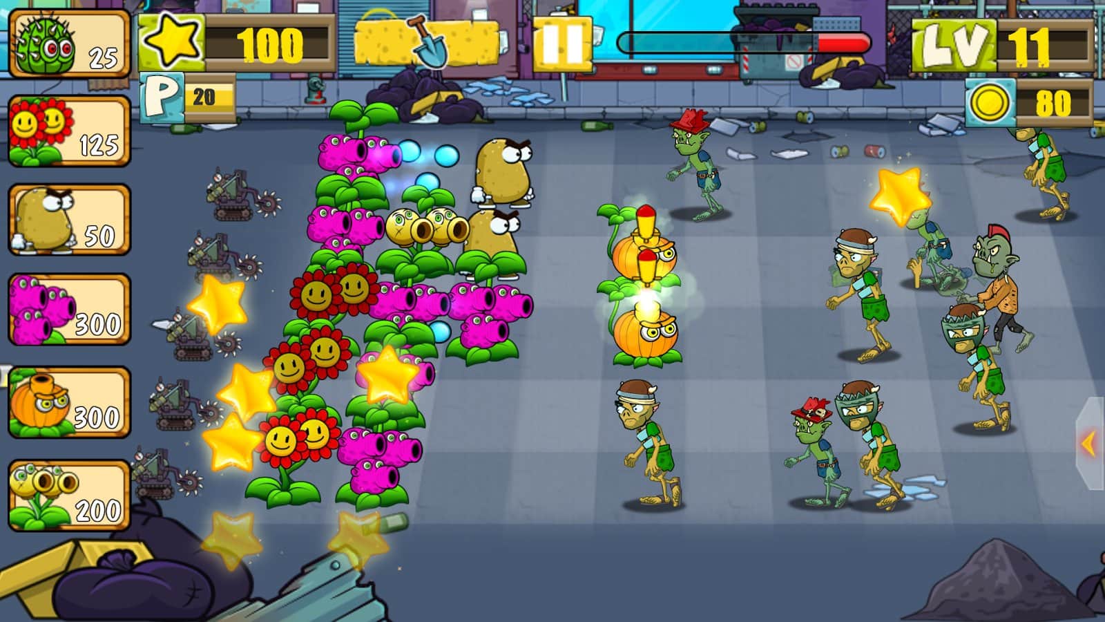 Собирайте монеты и звезды, чтобы покупать новые растения и улучшать уже существующие.