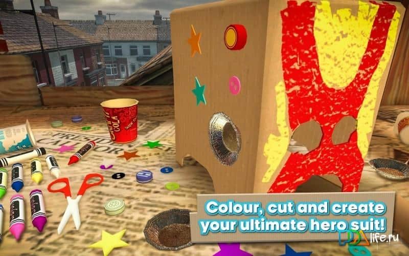 Playworld Superheroes – игра, которая предоставляет шанс любому игроку стать настоящим супер героем. В игре вас ожидают увлекательные, местами динамичные уровни с массой разнообразного игрового контента. Любому супер герою нужен костюм. Берём картон, ножницы, краски и другие предметы необходимые в подготовке и создании вашего нового образа. Начинаем вырезать шлем, потом разукрашиваем его, как закончим с ним приступаем к костюму. После того как костюм готов начинаем выполнять различные миссии в которых необходимо уничтожать различных монстров всех мастей. Одолейте их всех и станьте настоящим супер героем.