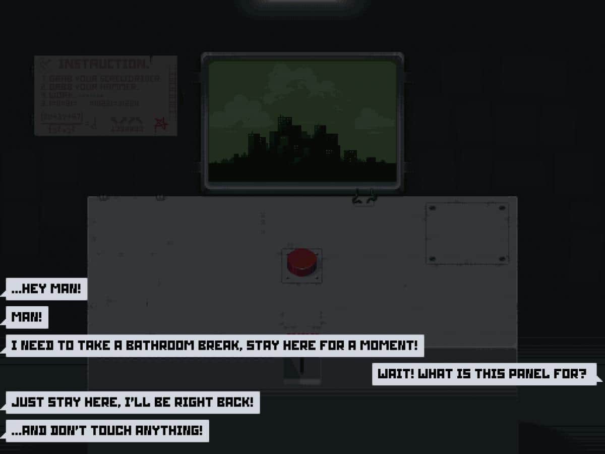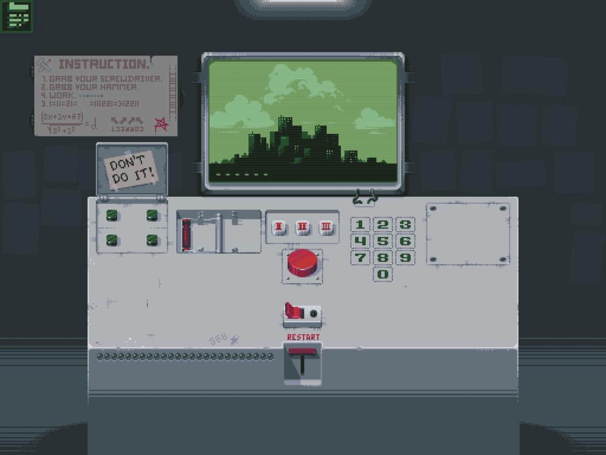 Please, Don't Touch Anything – отличная головоломка где от ваших действий будет зависеть жизнь людей. В этой трехмерной игре вы окажитесь в закрытом помещении, где вас оставили ненадолго покараулить красную кнопку, при этом строго настрого наказали не чего не трогать. В этой игре представлено более десяти различных концовок, каждая из которых будет зависеть от ваших действий. Решайте непростые задачки и головоломки и старайтесь удержаться, чтобы не нажать красную кнопку. Если вы все таки нажмете кнопку, то все последствия лягут на ваши плечи, стоит ли идти на риск! Играйте в эту игру и полностью погрузитесь в атмосферу, проигрывая различные финалы игры.